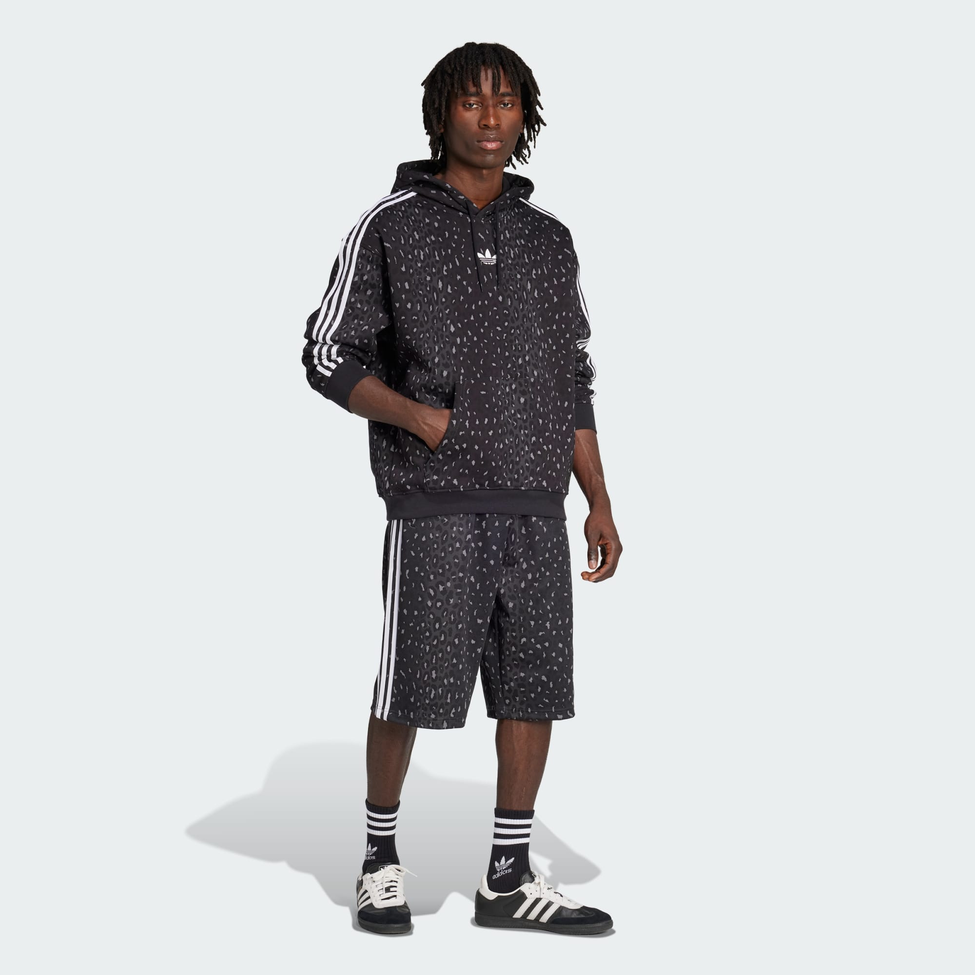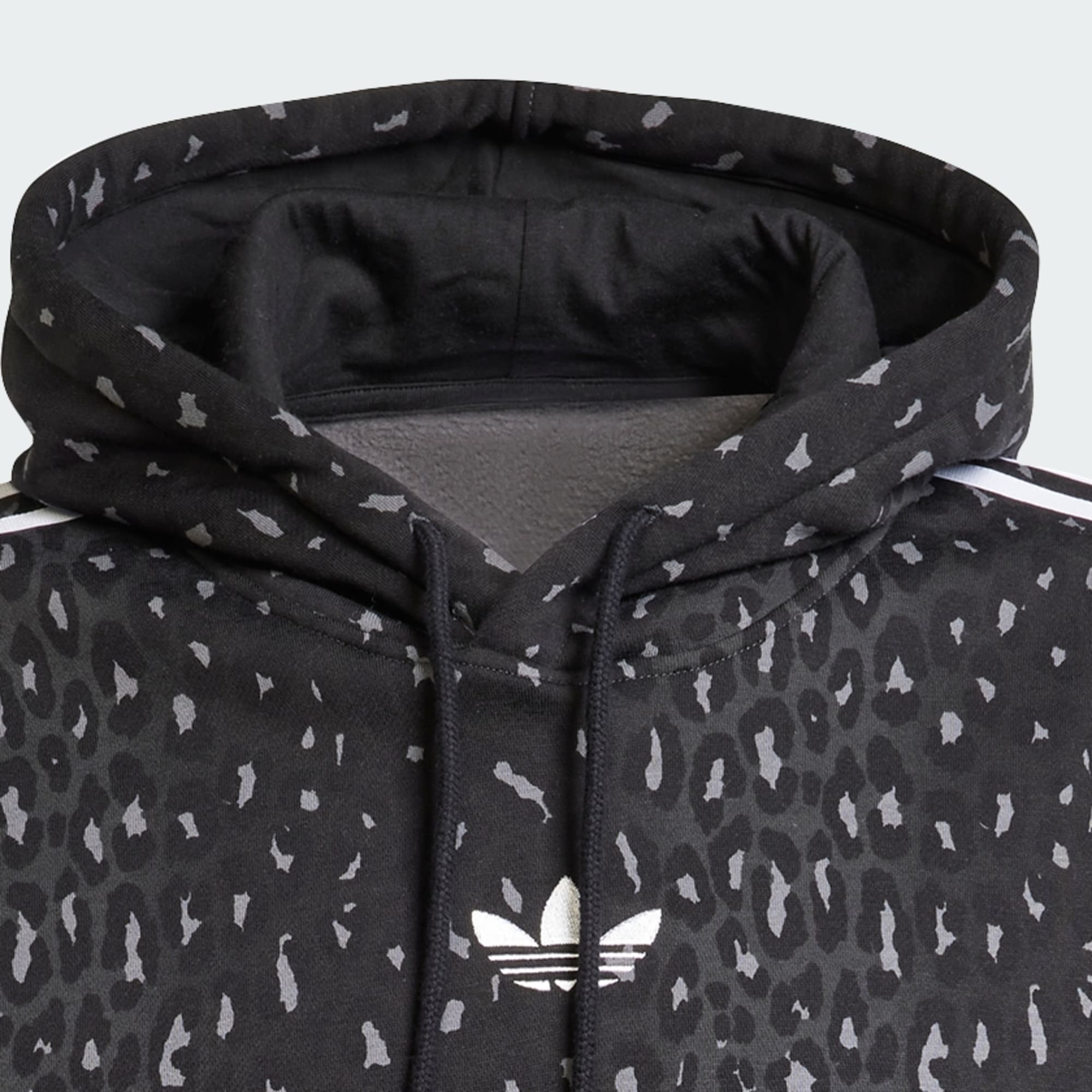 Deze adidas hoodie laat je wilde kant zien met een luipaardprint die je casual stijl een stoer randje geeft. De zachte fleece biedt behaaglijk comfort en warmte. Het losvallende model past makkelijk over T-shirts en andere tops voor een relaxte look. Combineer 'm met een joggingbroek voor een weekend-vibe of ga voor netjes met donker denim.
