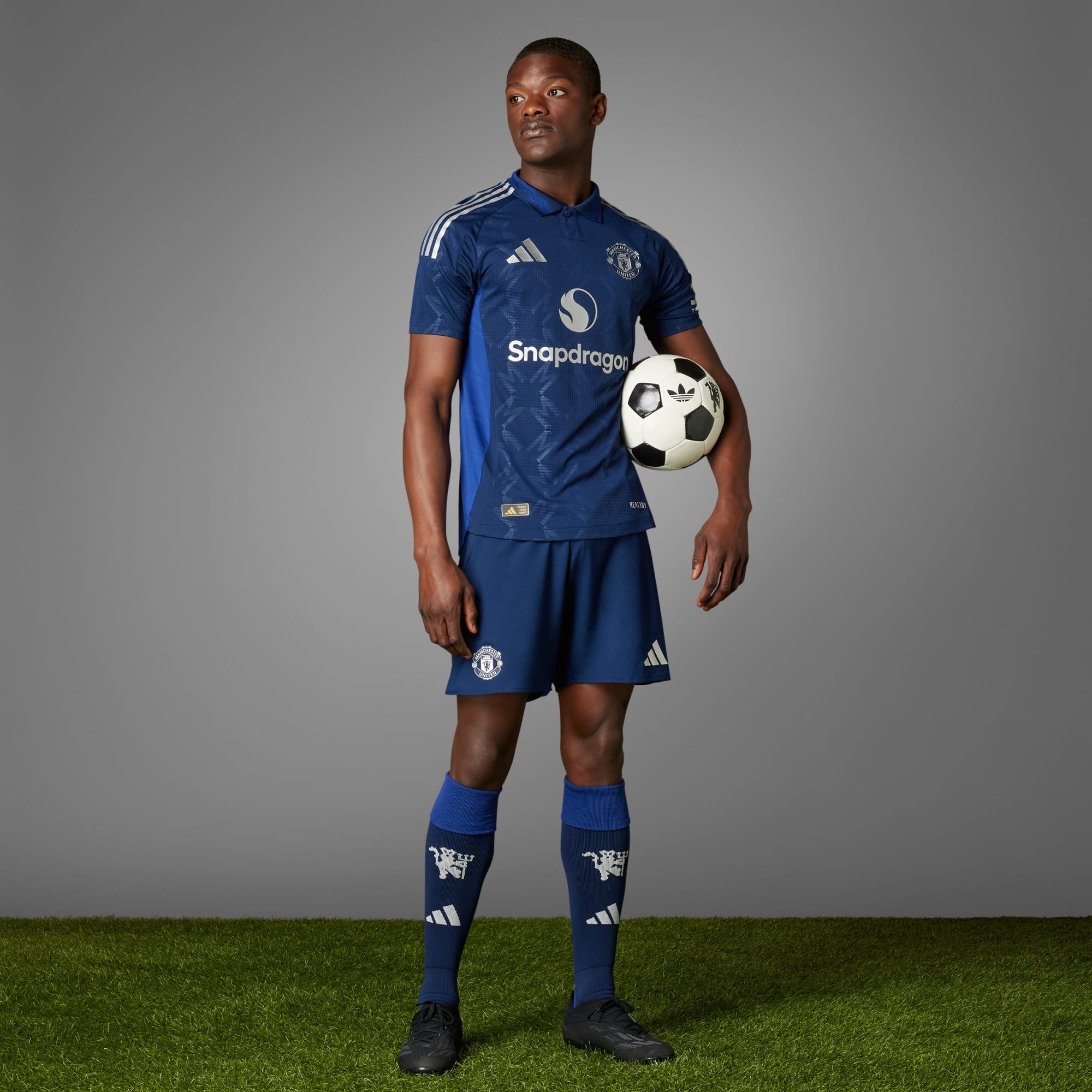Met een opvallend design als eerbetoon aan voetbalcultuur voelt dit adidas Manchester United voetbalshirt zich zowel op het veld thuis als daarbuiten. Zilveren details schitteren op een indigoblauwe achtergrond die ook is uitgerust met een subtiel patroon van 'M'-monogrammen. De lichtblauwe graphic op de stijlvolle polokraag brengt een eerbetoon aan de rivier die langs Old Trafford stroomt. Ventilerend HEAT.RDY garandeert dat dit authentieke shirt klaar is voor belangrijke uitwedstrijden. Dit product is gemaakt met 100% gerecycled materiaal. Door hergebruik van materialen die al eerder zijn gecreëerd, helpen we afval verminderen, en ook onze afhankelijkheid van beperkt beschikbare grondstoffen. Daarnaast verkleint het de voetafdruk van onze producten.