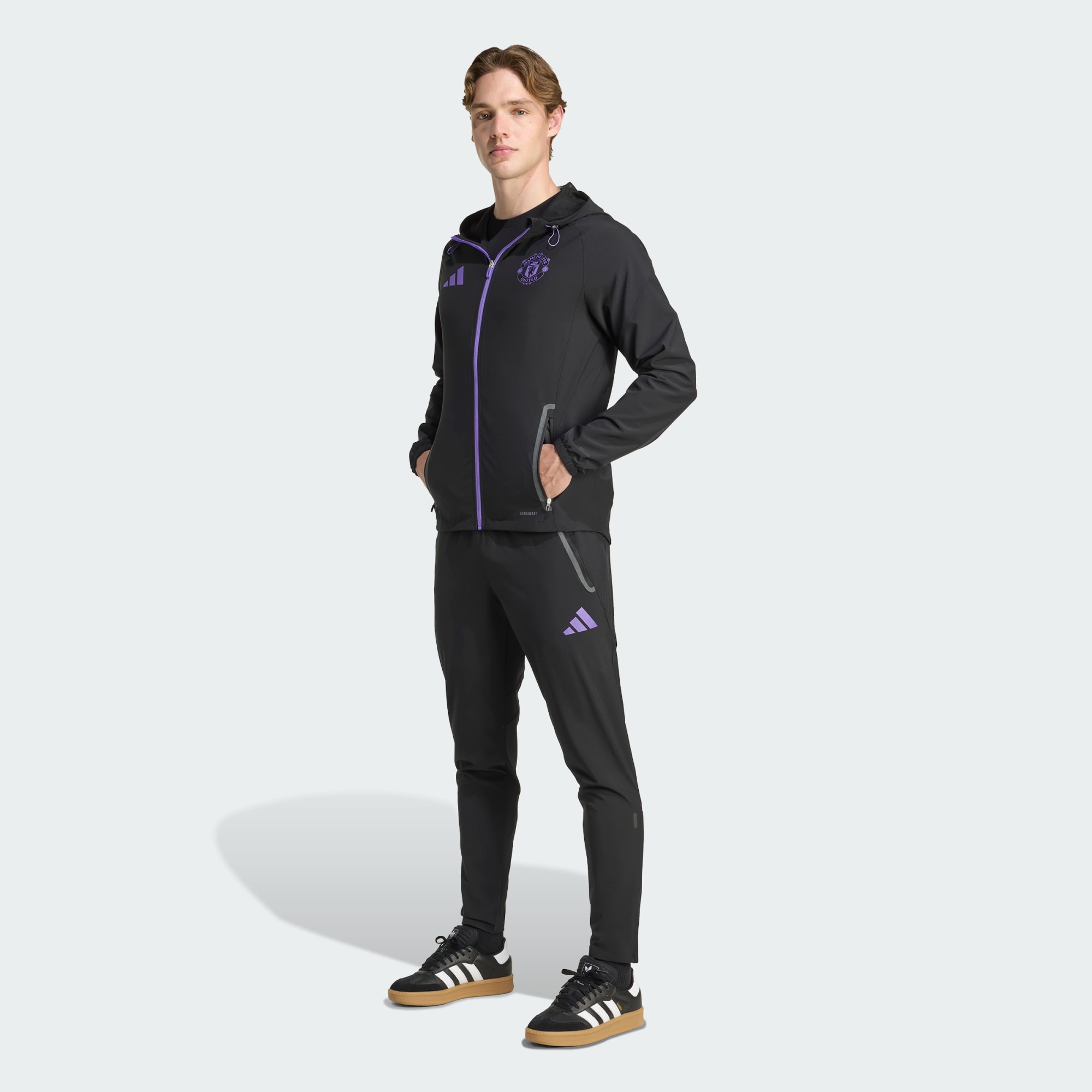 Laat overal je passie voor Manchester United zien in deze adidas broek. Het in het oog springende model bevat ritszakken om je essentials veilig op te bergen en heeft een reflecterend embleem om je liefde voor voetbal in de schijnwerpers te zetten. Stretchstof en AEROREADY werken samen om jou mobiel en vocht onder controle te houden.