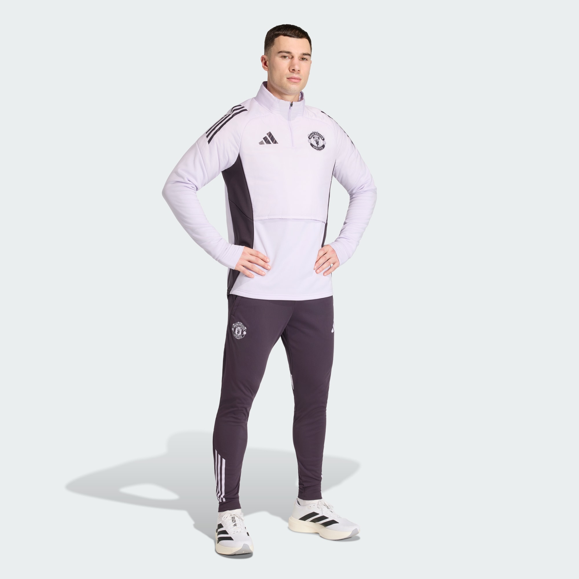 Dit adidas trainingsshirt, uitgevoerd in de kleuren die zijn geïnspireerd op het uitshirt van Manchester United, komt uit het tenue dat de spelers dragen als ze zich voorbereiden op een competitiewedstrijd. Het is gemaakt voor sessies in koud weer en combineert vooruitstrevende functies zoals een opbergbare bivakmuts en handbedekkingen die kunnen worden teruggevouwen als je ze niet nodig hebt. Het opgestreken clubembleem maakt de look in voetbalstijl af.
