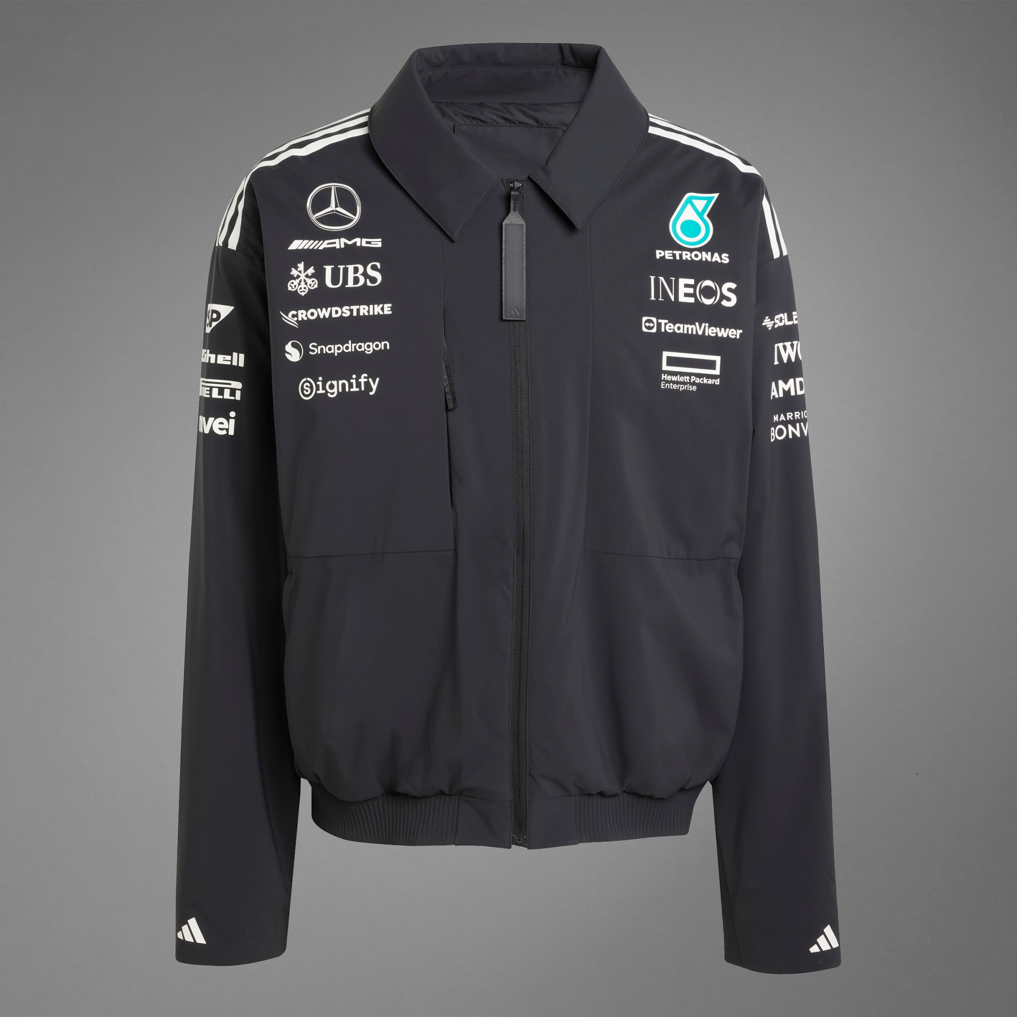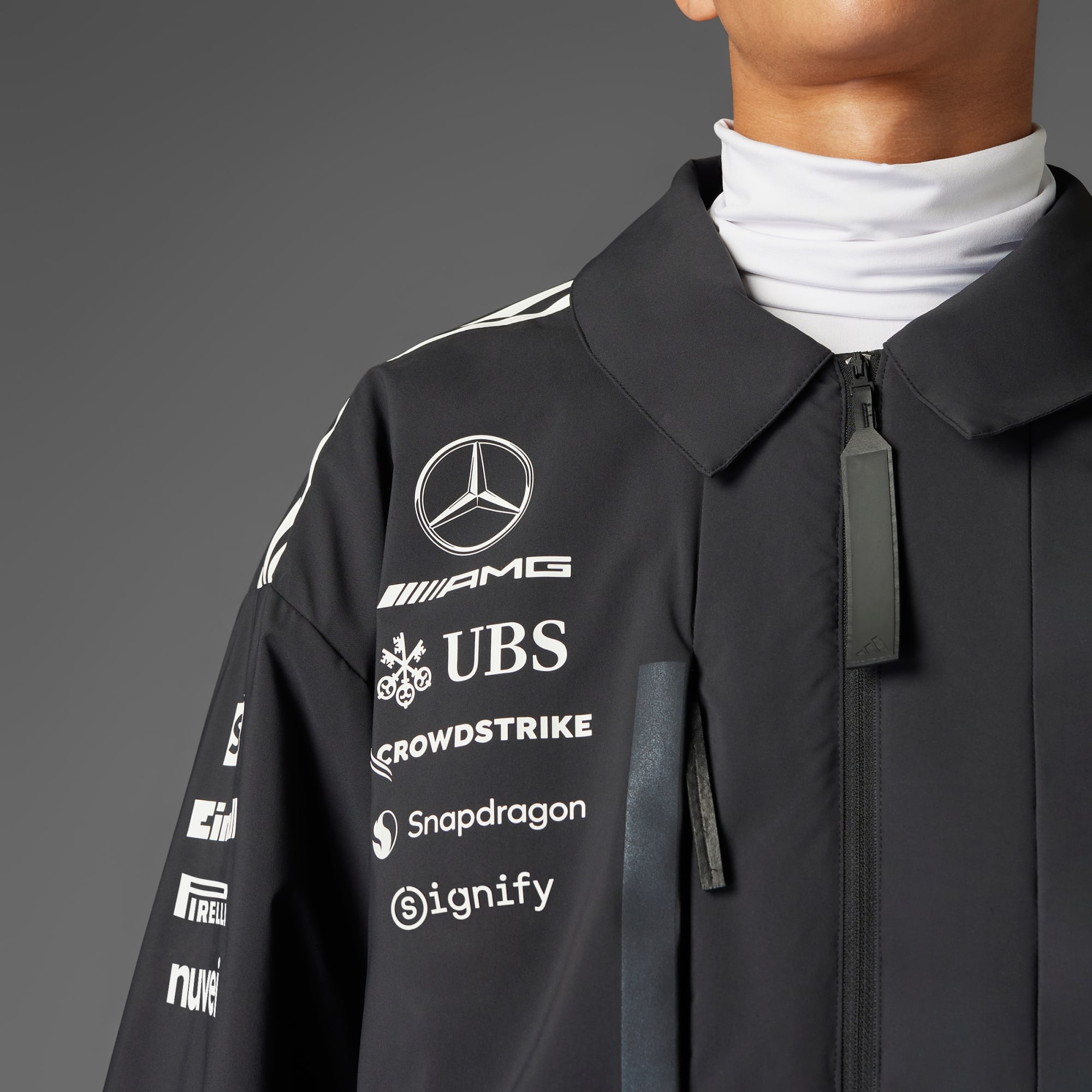 Laat je passie zien en geef je wedstrijdstijl een boost met dit adidas x Mercedes-AMG PETRONAS F1 Team jack.