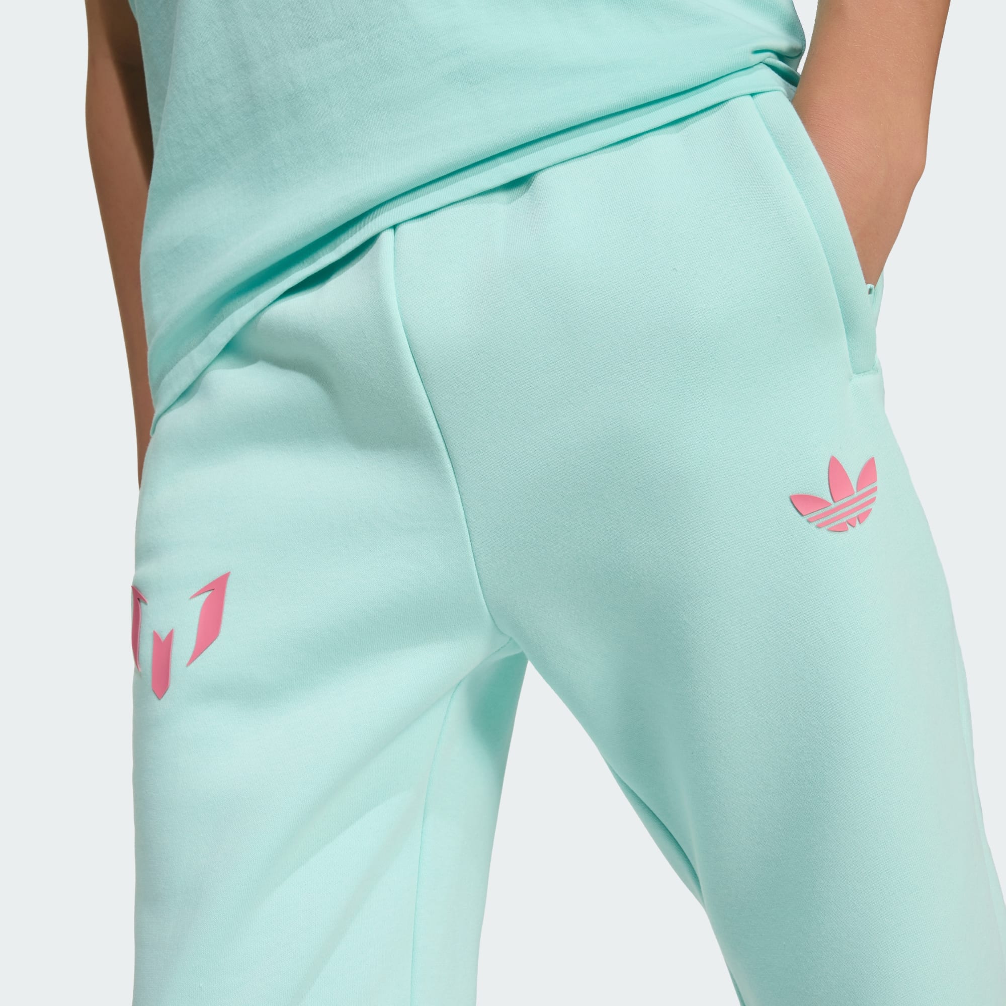 Vertegenwoordig de beste die het voetbal kent, óók als je buiten het veld relaxt. In deze junior adidas broek van zachte fleece - met geribbelde boorden en een trekkoord in de taille - kun je comfortabel ontspannen. Een Messi-logo op de pijp vormt een finishing touch waar de trots vanaf straalt.