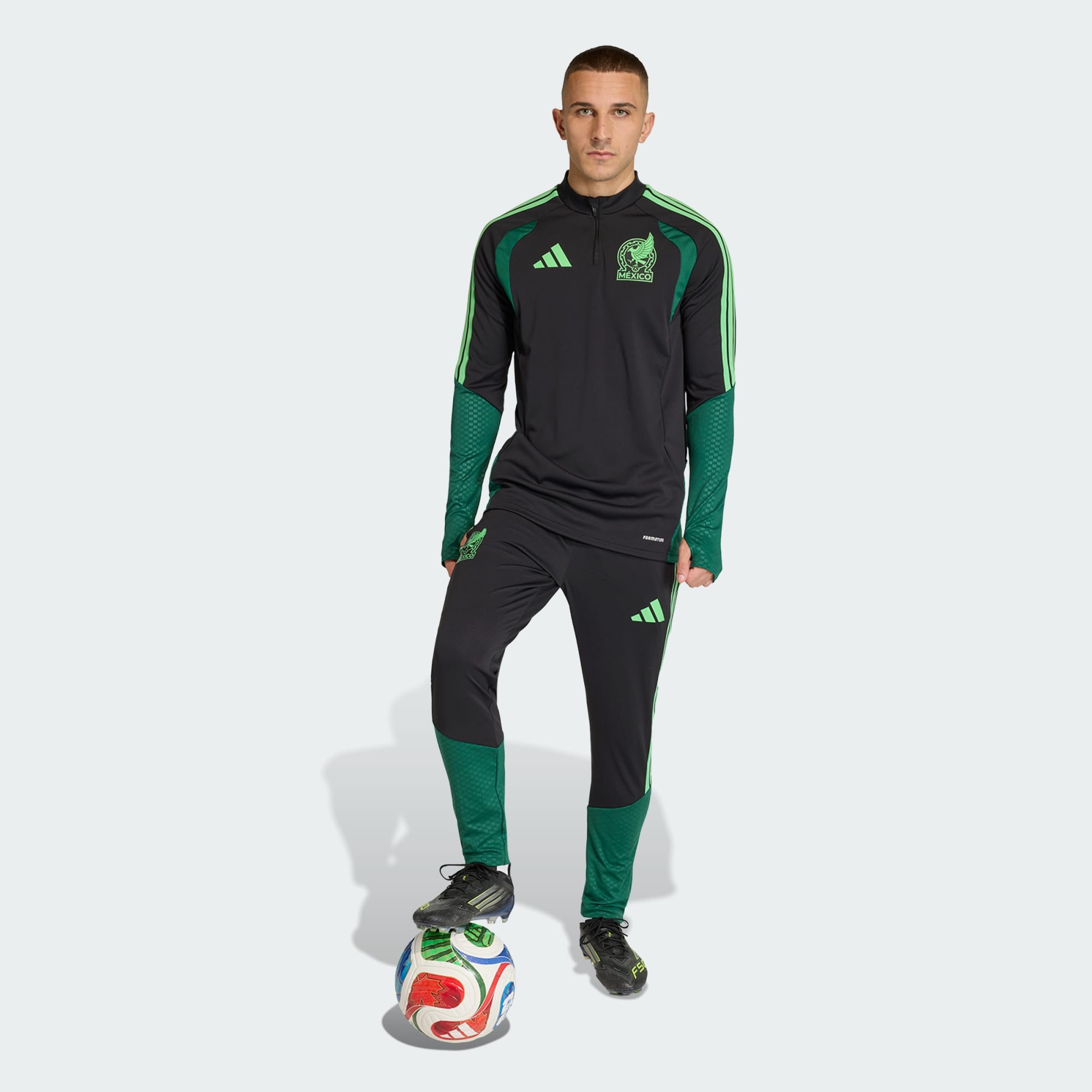 Stap het veld op in het Mexico 26 Tiro Training jack, waar traditie en innovatie elkaar ontmoeten. Dit jack is geïnspireerd op het iconische thuistenue en verbindt je met het rijke erfgoed van de voetbalbond, terwijl er een frisse draai aan wordt gegeven. Voor topprestaties gemaakt van stof met mechanische stretch, die pasvorm en comfort voorop stellen. De geïntegreerde Formotion-technologie is ontworpen om je vrij te laten bewegen, niet te beperken, zodat je met vertrouwen kunt aannemen, overspelen en schieten. De ontwerpelementen met reliëf geven jouw trainingsuitrusting een vleugje stijl, terwijl inzetstukken van mesh op de borst voor ventilatie zorgen, zodat je je gefocust voelt terwijl je je grenzen verlegt. De gestroomlijnde rits voegt comfort toe, waardoor het een praktische keuze is voor atleten. Of je nu jouw vaardigheden perfectioneert of pittige oefeningen doet, dit trainingsjack ondersteunt jouw bewegingen. Omarm de geest van Mexico en verhef je spel met adidas.