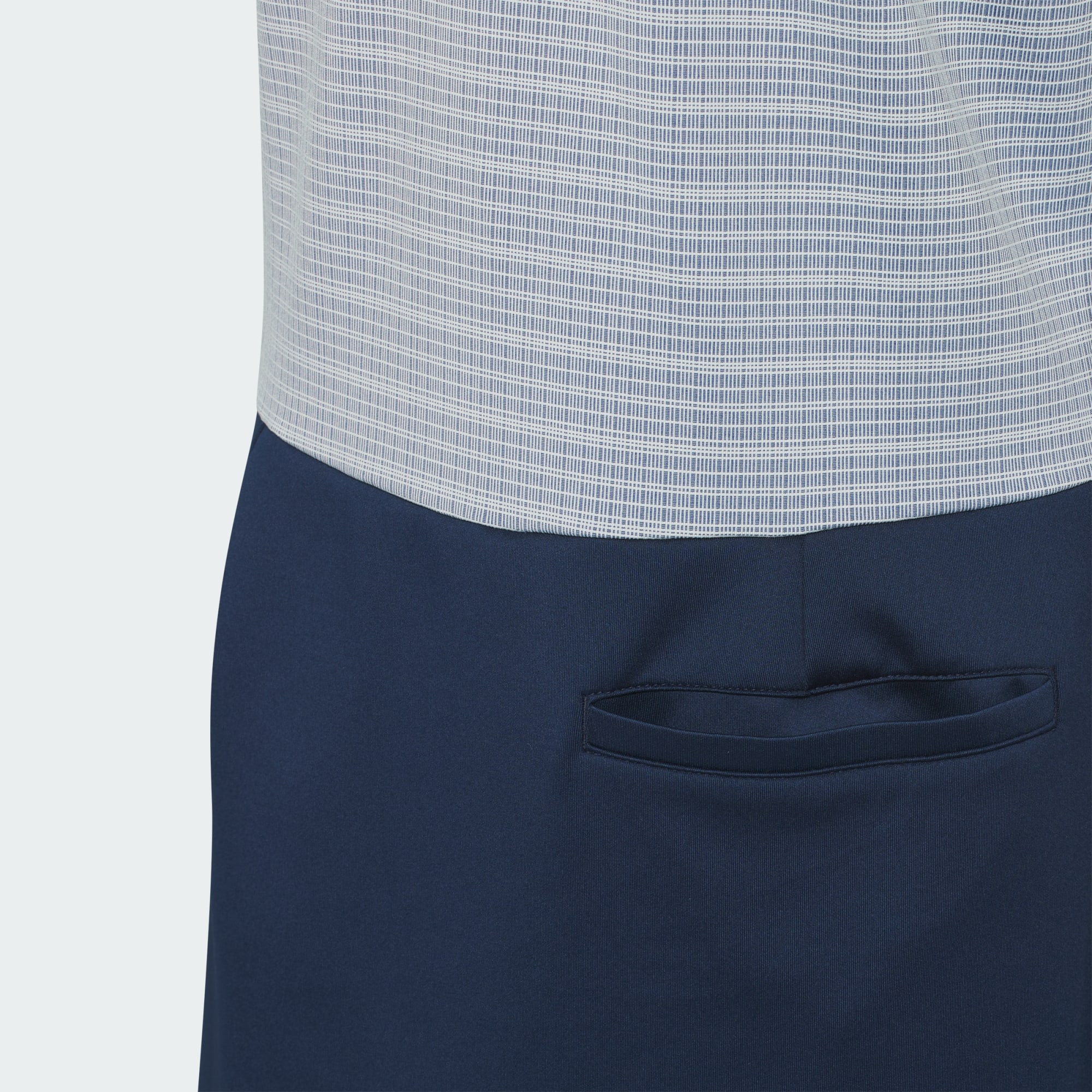 Een stijlvolle golfjurk van twee soorten stof met zakken voor een klassieke look.
