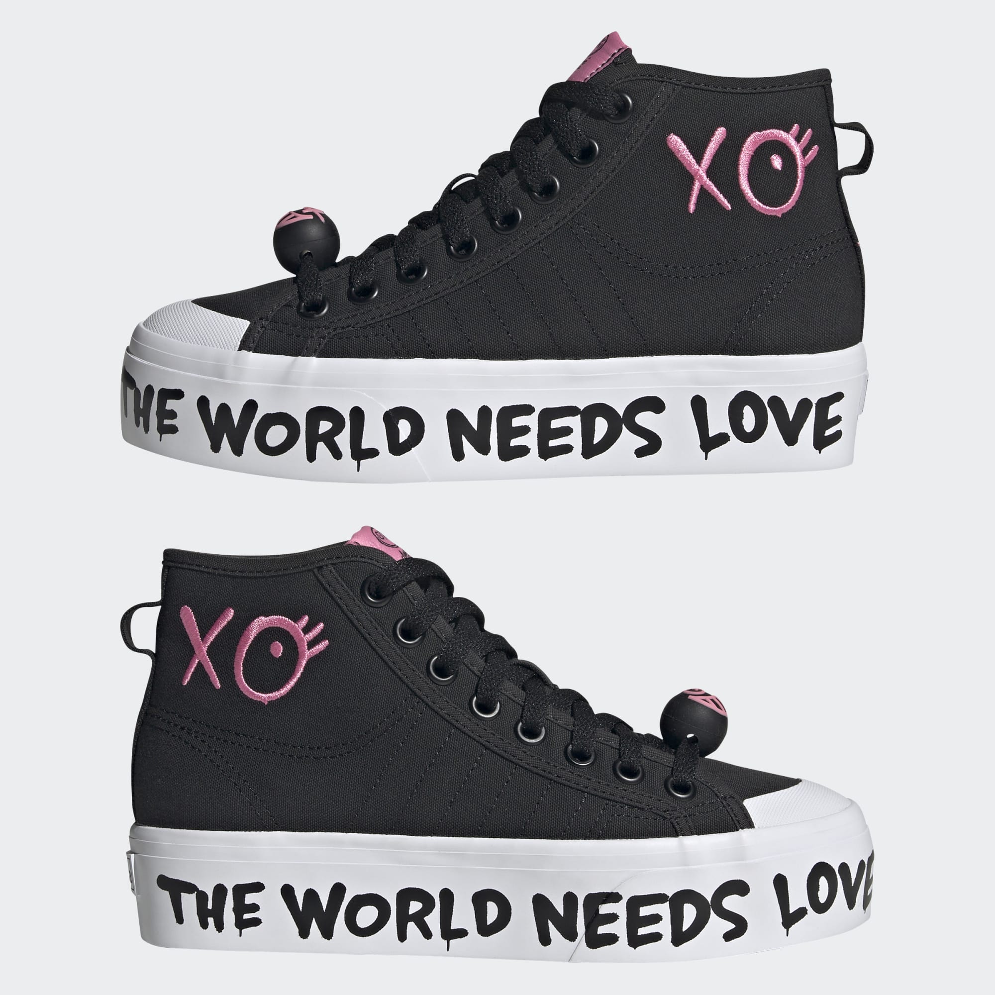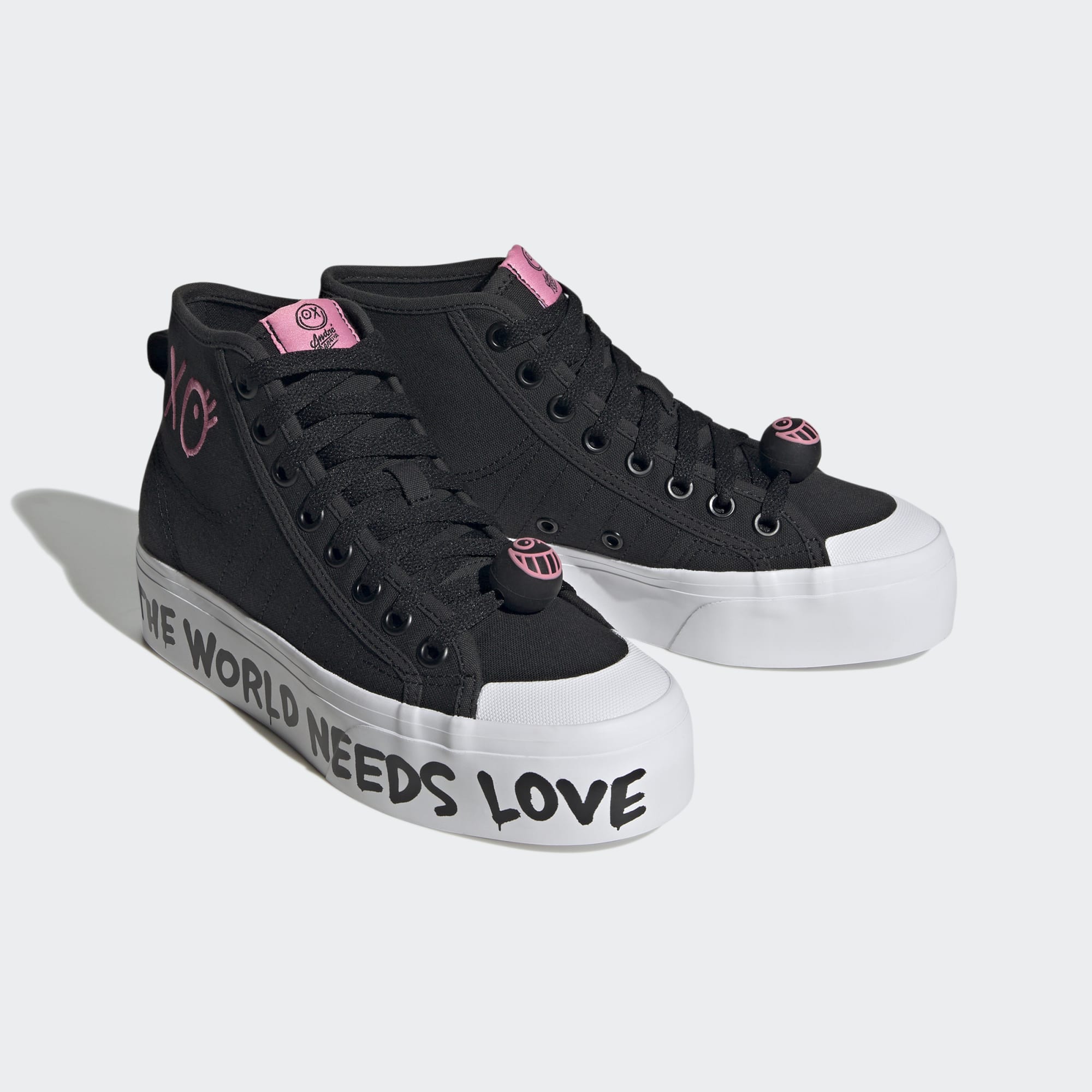 Deze adidas schoen schrijft het voor je uit: "The world needs love." We bundelen onze krachten met graffitikunstenaar André Saraiva voor een speciale collectie die is geïnspireerd op de liefde, en promoten André's mantra om acceptatie onder ons allemaal aan te moedigen. Het is onmogelijk om het verhaal te missen dat deze schoenen vertellen, en ze vormen komende Valentijnsdag een 'Love Union' met jouw persoonlijke stijl. Het bovenwerk bestaat voor ten minste 50% uit verschillende gerecyclede materialen. Dit product vertegenwoordigt slechts één van onze oplossingen om plastic afval te verminderen.
