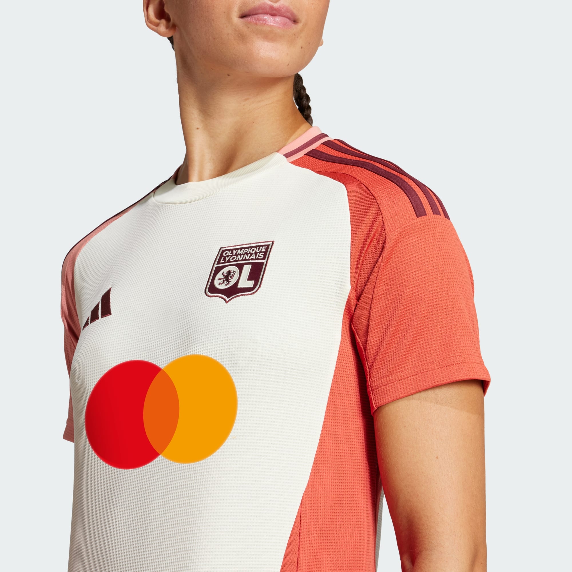 Een in het oog springend shirt uit het derde tenue van L'OL, gemaakt met gerecycled materiaal.