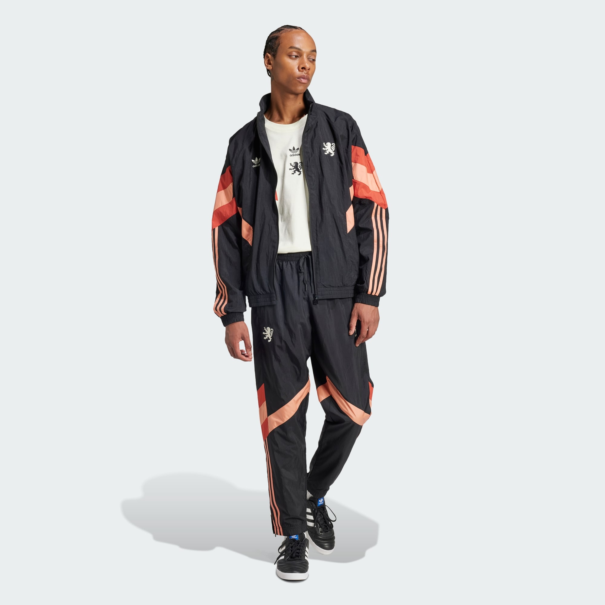 Of je nu je club aanmoedigt met andere Olympique Lyonnais-fans of in je eentje op pad gaat, deze gladde geweven broek combineert klassieke adidas stijl met clubdetails. Op de ene pijp prijkt de iconische Trefoil en op de andere een versimpeld clubembleem. De opvallende 3-Stripes-graphic op de knieën maakt een look compleet die groots uitpakt qua voetbalhistorie. Dit product is gemaakt met ten minste 70% aan gerecyclede materialen. Door hergebruik van materialen die al eerder zijn gecreëerd, helpen we afval verminderen, en ook onze afhankelijkheid van beperkt beschikbare grondstoffen. Daarnaast verkleint het de voetafdruk van onze producten.