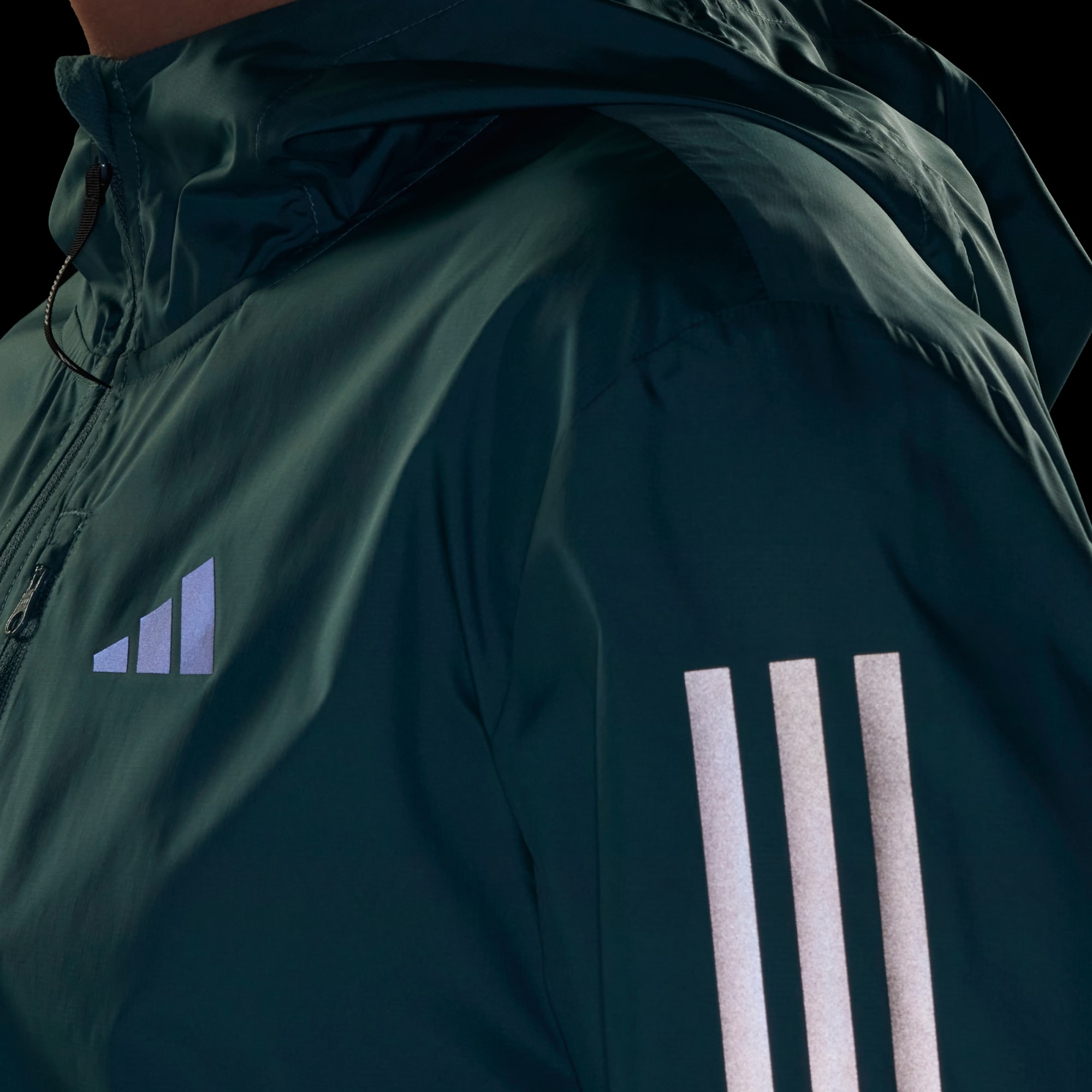 Je hoeft niet binnen op de loopband te rennen. Dit adidas hardloopjack is gemaakt met winddichte WIND.RDY, zodat je lekker naar buiten kunt om in alle comfort te hardlopen. Trek hem over een hardlooptanktop of een T-shirt met lange mouwen en zet de capuchon op als je je oren warm wilt houden. Reflecterende details lichten op in het schemerlicht en een borstzak geeft je een handige plek om je huissleutel in op te bergen.