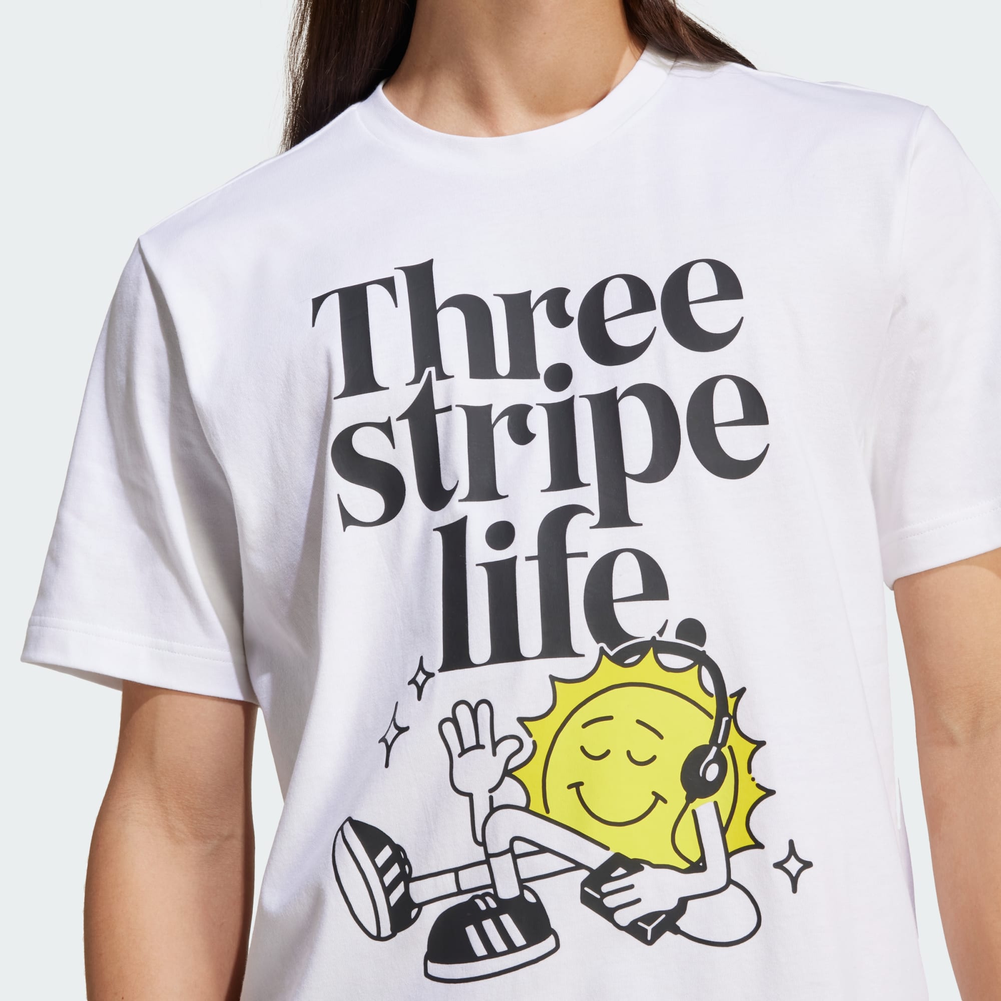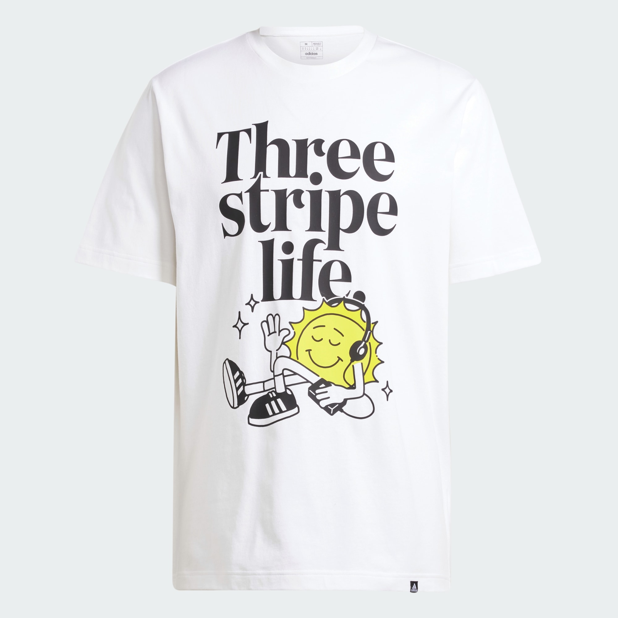 Deel positieve vibes zonder een woord te zeggen. Dit zachte adidas T-shirt straalt vrolijke vibes uit met een zonnige graphic op de voorkant. Of je nu de stad verkent of met vrienden chilt, deze relaxte top houdt je comfortabel. Combineer 't met je favoriete joggingbroek en sneakers, trek een lichte sweater erbij aan en je bent klaar voor de dag vol optimisme en goede vibes. Het katoen in dit product is verkregen via Better Cotton. Better Cotton wordt ingekocht via een handelsketenmodel genaamd massabalans. Dit betekent dat Better Cotton niet fysiek te herleiden is tot eindproducten. Meer informatie vind je hier: https://bettercotton.org/who-we-are/our-logo/