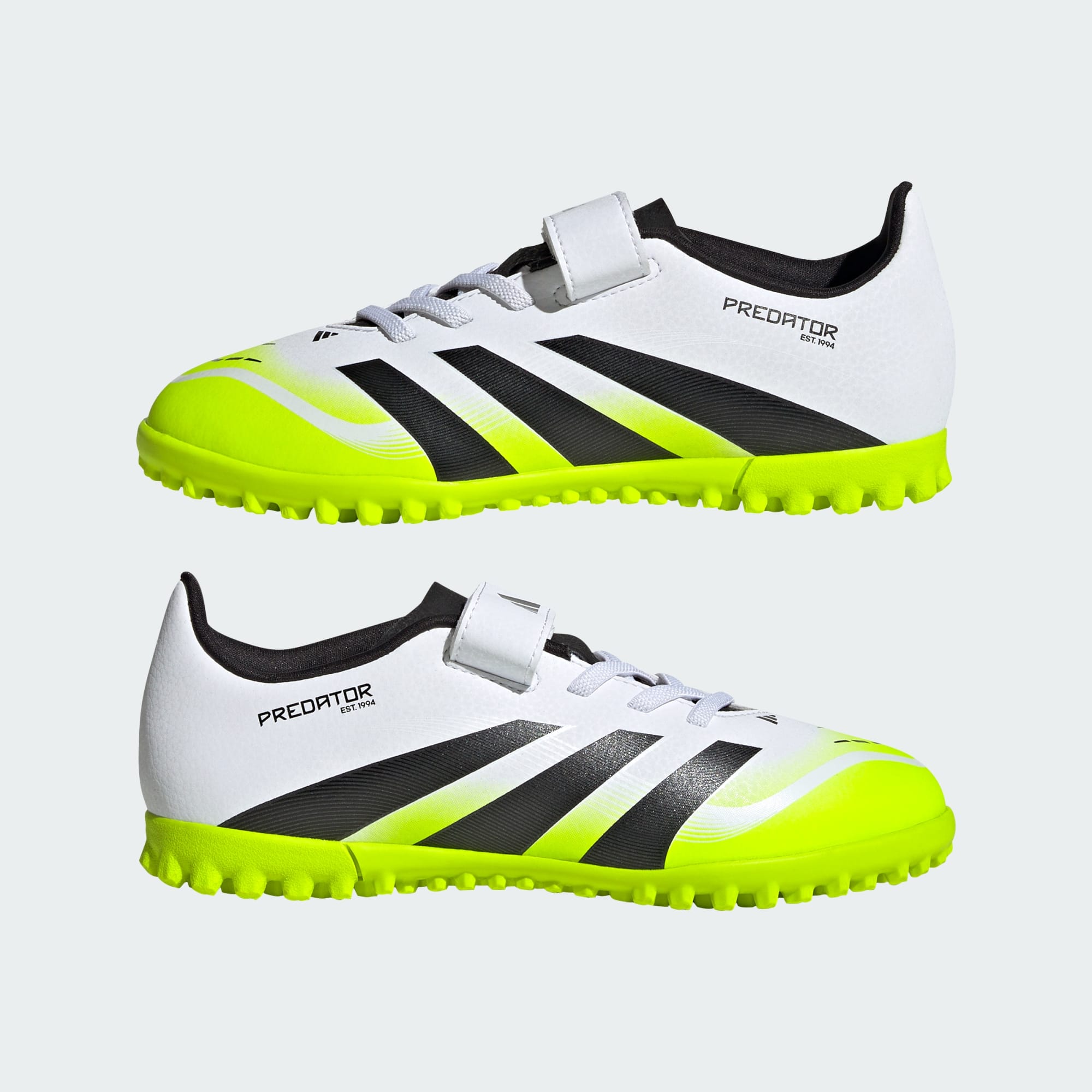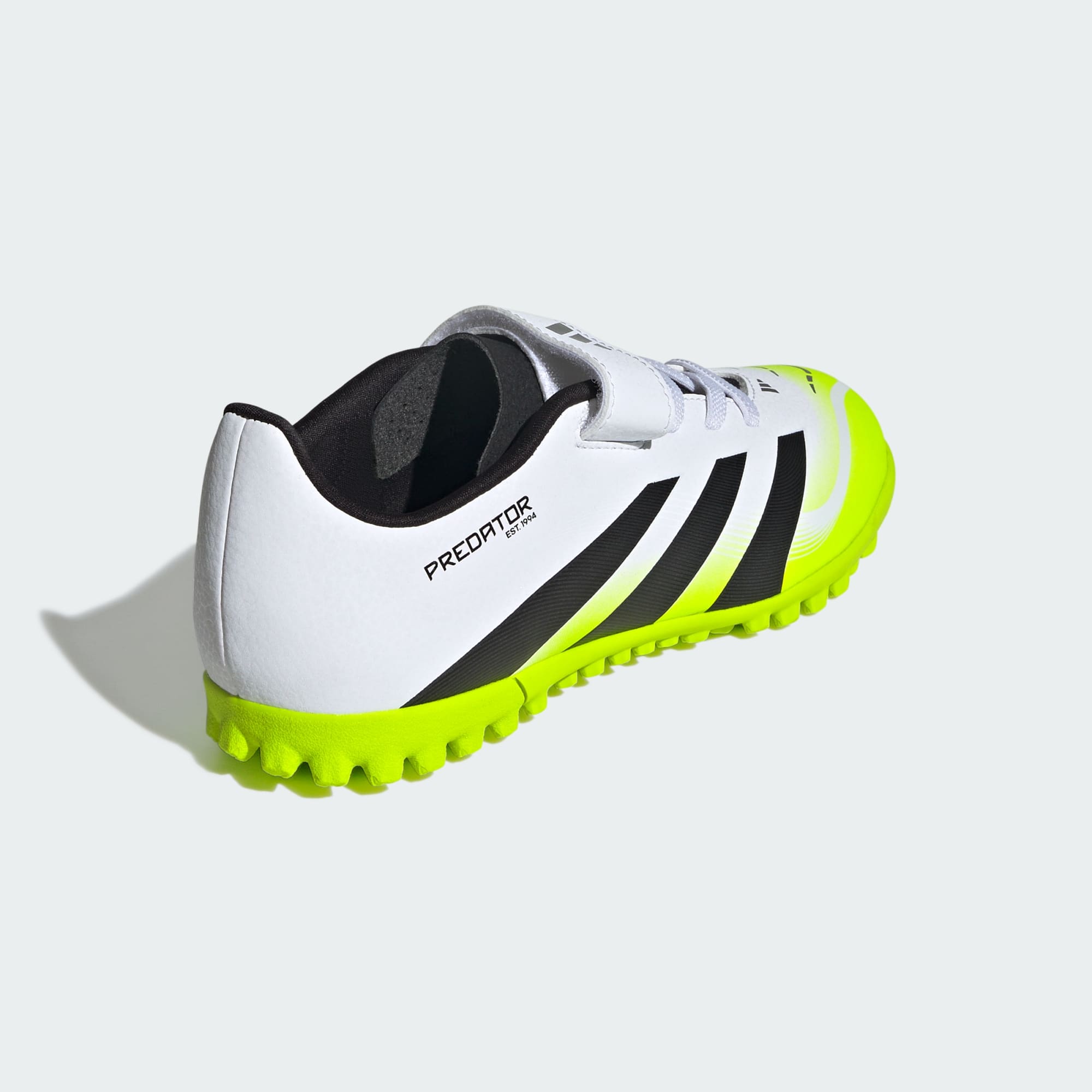 Het verschil tussen willen scoren en weten dat je gaat scoren? De adidas Predator voetbalschoenen! Deze junior Club voetbalschoenen hebben een synthetisch bovenwerk dat is gevoerd met zacht textiel en wordt vastgezet met een klittenbandsluiting. De rubberen loopzool met grof profiel is ontworpen om jou in uitstekende schietposities te brengen op kunstgras en hardcourt.