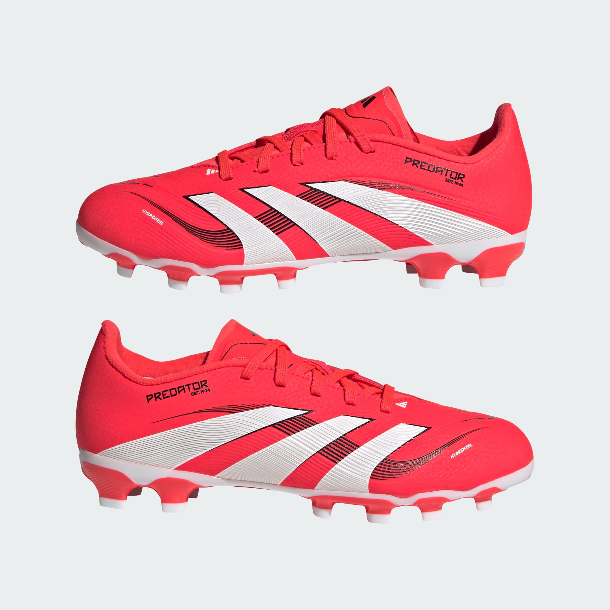 Begin aan de wedstrijd in de wetenschap dat je zult scoren in junior adidas Predator League voetbalschoenen die zijn ontwikkeld voor doelpunten. Het Hybridfeel-bovenwerk is helemaal bedekt met een 3D-textuur, en stroeve Strikescale-vinnen helpen je bij elk schot de bal onder controle te houden. Door de veelzijdige loopzool sta je op verschillende soorten velden steeds op het juiste moment op de juiste plek.