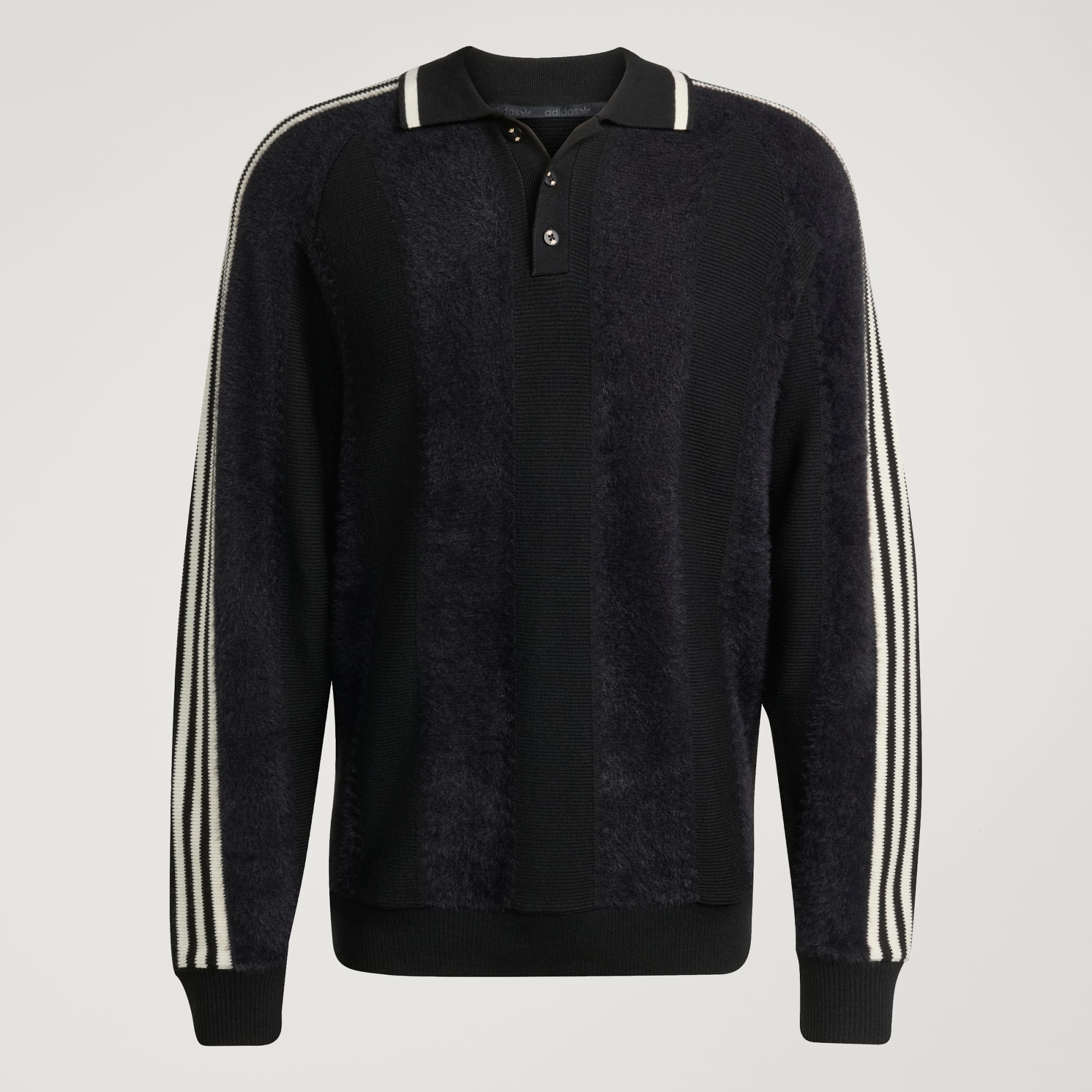 Een gebreid sportshirt met een korte knoopsluiting.