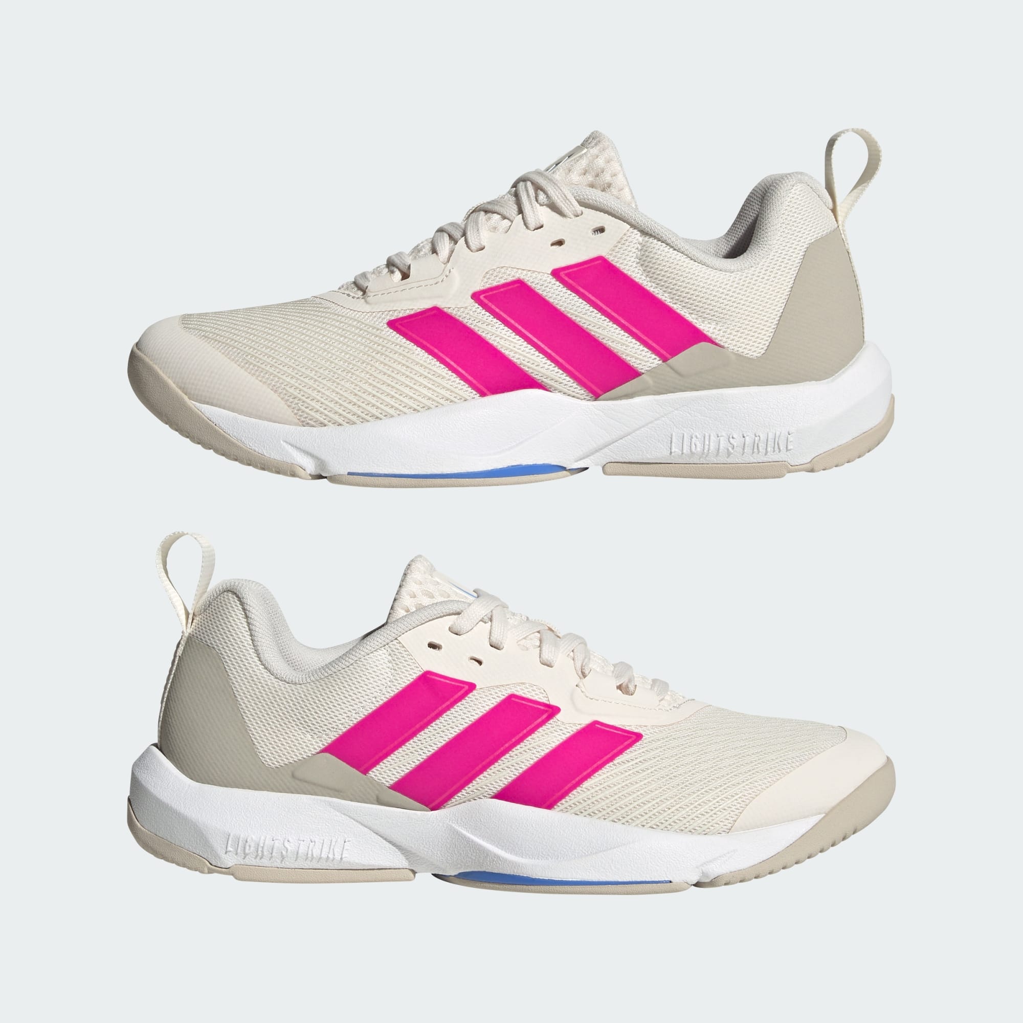 Blijf in deze adidas sportschoenen in elke richting lenig. Het ademende bovenwerk van mesh is versterkt, zodat je alles kunt geven tijdens mountain climbers, lunges, jumps en double unders. De Lightstrike-demping in de middenzool is superlicht en responsief om snel te kunnen bewegen. Met het verstelbare vetersysteem bepaal je zelf de verankering.