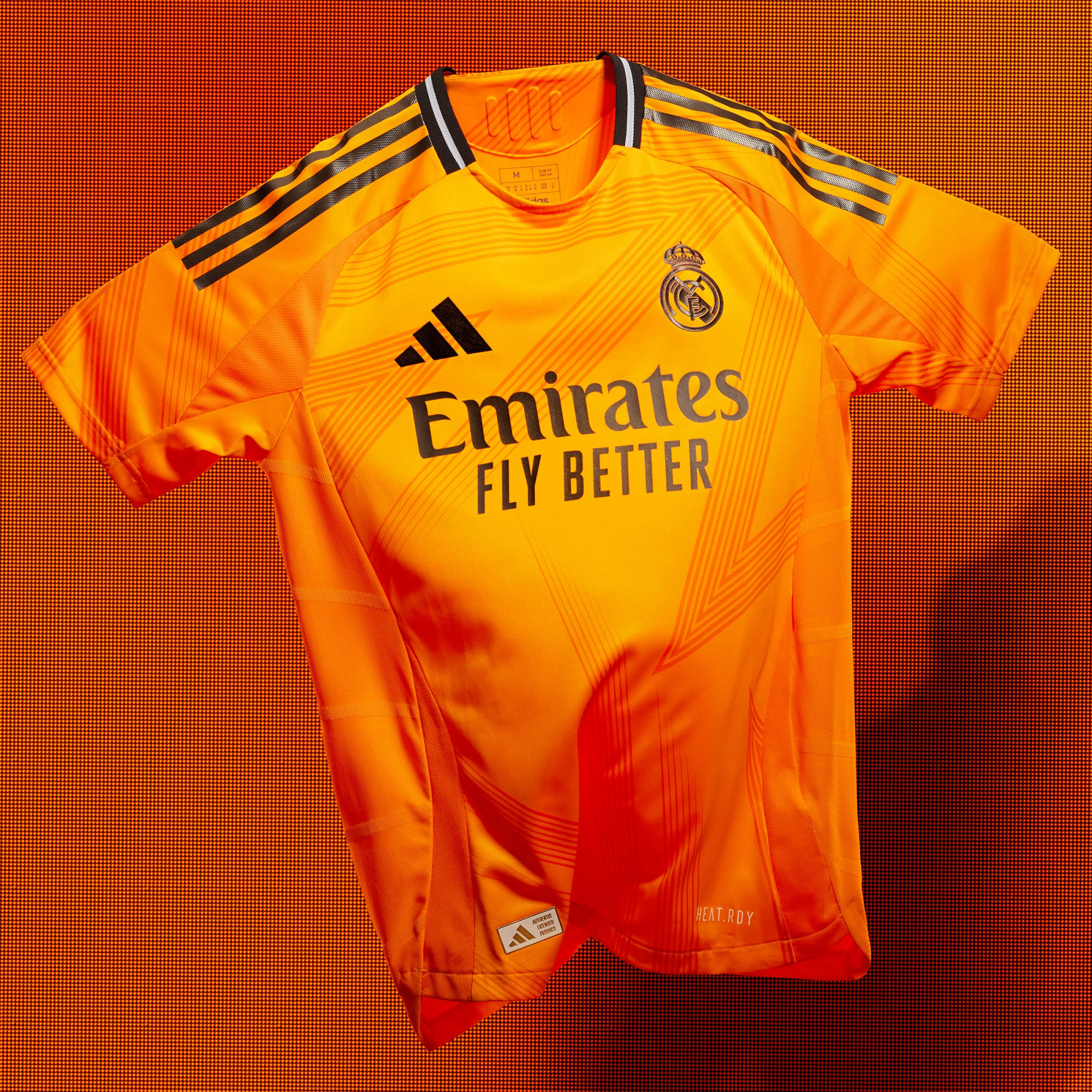 Ontworpen voor comfort en om op te vallen in de menigte: dit nieuwe Real Madrid 24/25 uitshirt heeft een feloranje basis, abstracte graphics en metallic blauwe details als finishing touch.