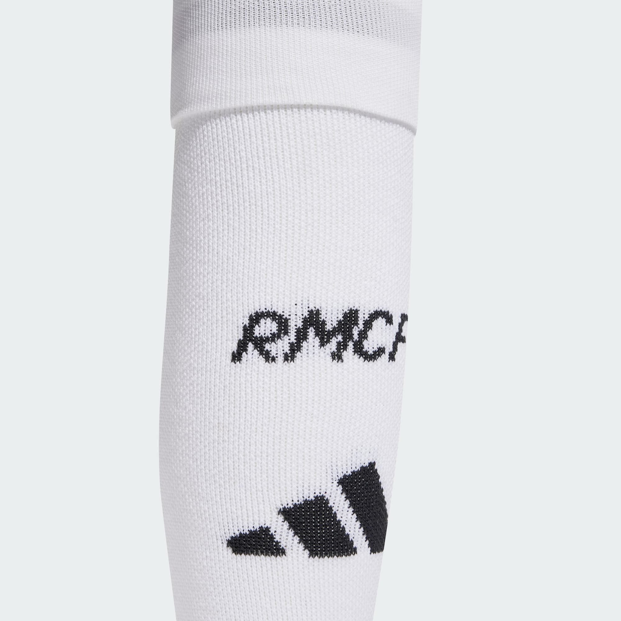 Ondersteunende sokken uit het Los Blancos thuistenue, deels gemaakt met gerecycled materiaal.