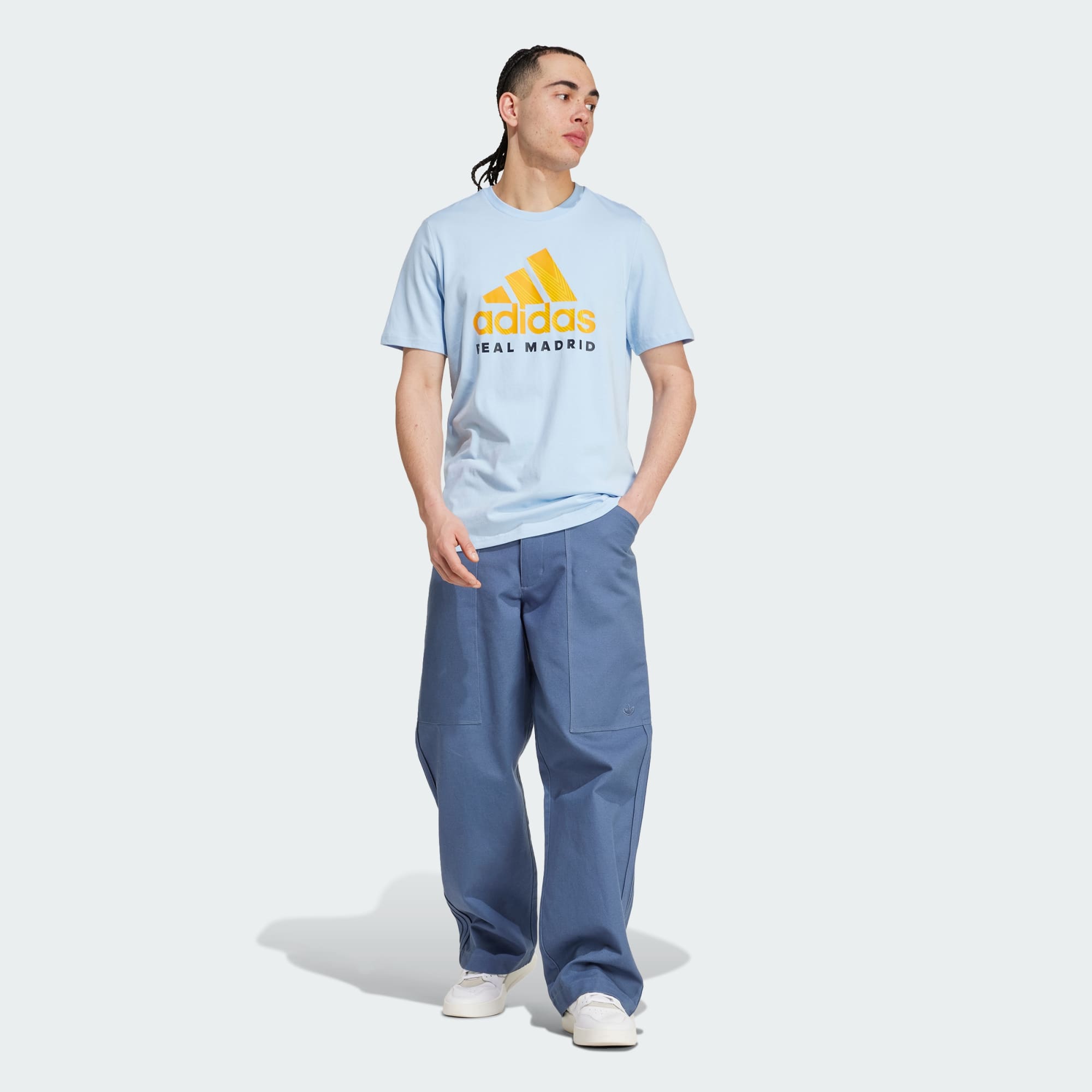 Breng in dit adidas Real Madrid T-shirt een eerbetoon aan de voetbalkoningen. Of je 't nu combineert met een spijkerbroek voor een casual koffiedate of met een joggingbroek voor een potje voetbal, dit veelzijdige T-shirt is altijd wat je als eerste uit je kast pakt. De zachte enkele jersey houdt je comfortabel en de print van het embleem laat zien dat je Los Blancos trouw bent.