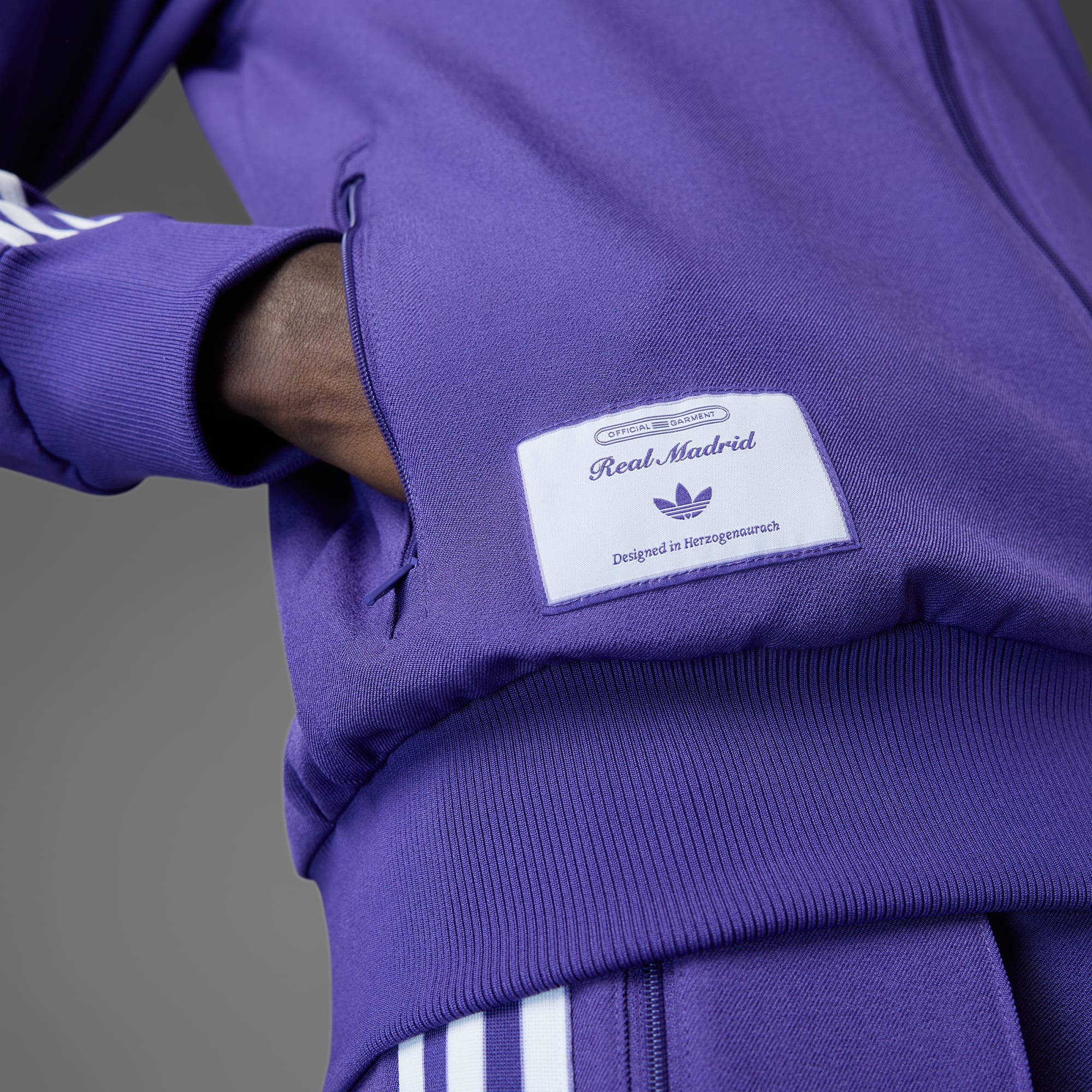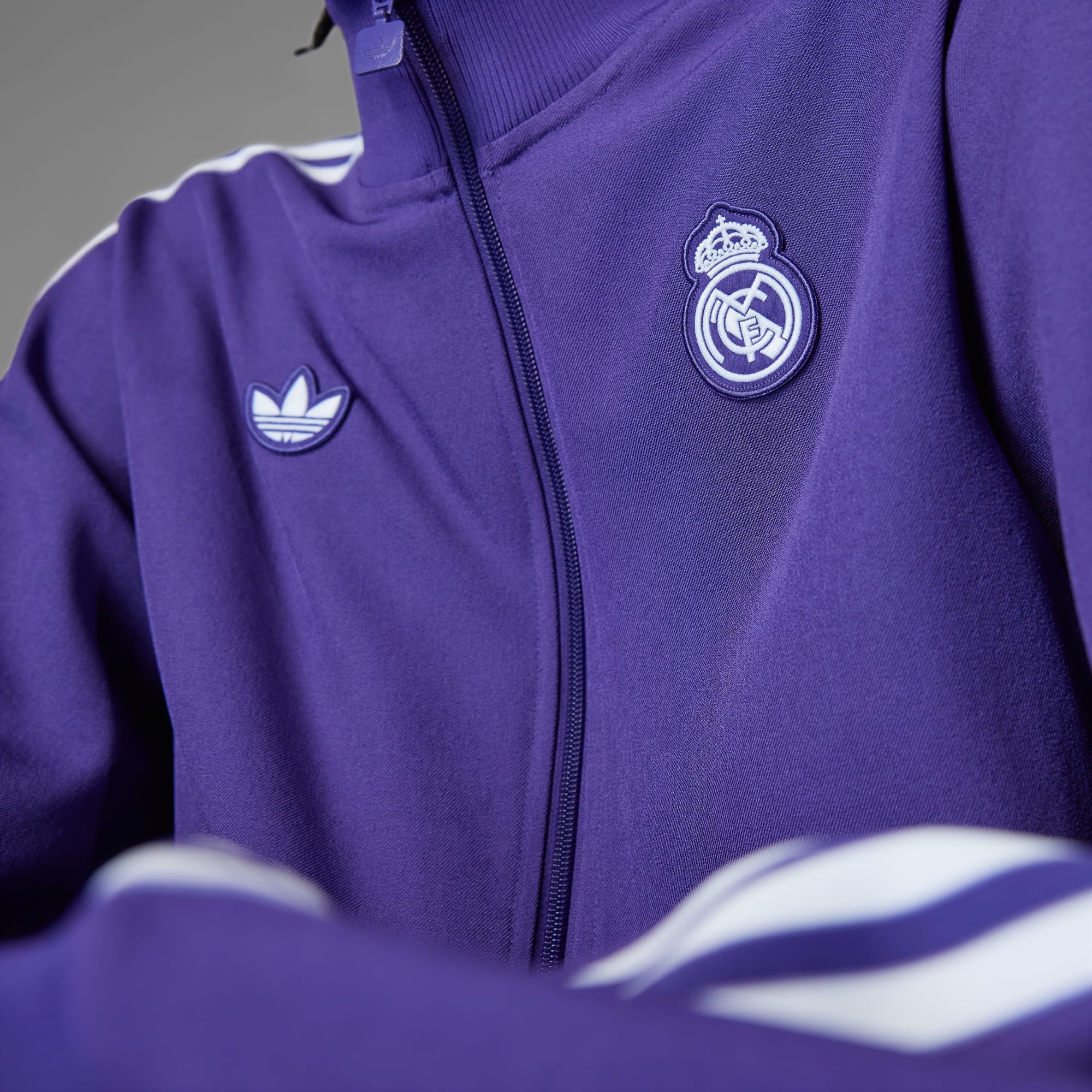 Ontstaan uit een voetbalfashion-revolutie. Dit Real Madrid sportjack brengt een eerbetoon aan de supporterscultuur die sinds de jaren 80 immens populair is geworden in Europa. Van het historische adidas silhouet tot het geweven label maakt 't een echt statement. De gestroomlijnde pasvorm zit je niet in de weg wanneer je je op de dag van de wedstrijd door de menigte beweegt. Het opgestikte clubembleem laat iedereen weten voor wie jij juicht. Dit product is gemaakt met ten minste 70% aan gerecyclede materialen. Door hergebruik van materialen die al eerder zijn gecreëerd, helpen we afval verminderen, en ook onze afhankelijkheid van beperkt beschikbare grondstoffen. Daarnaast verkleint het de voetafdruk van onze producten.