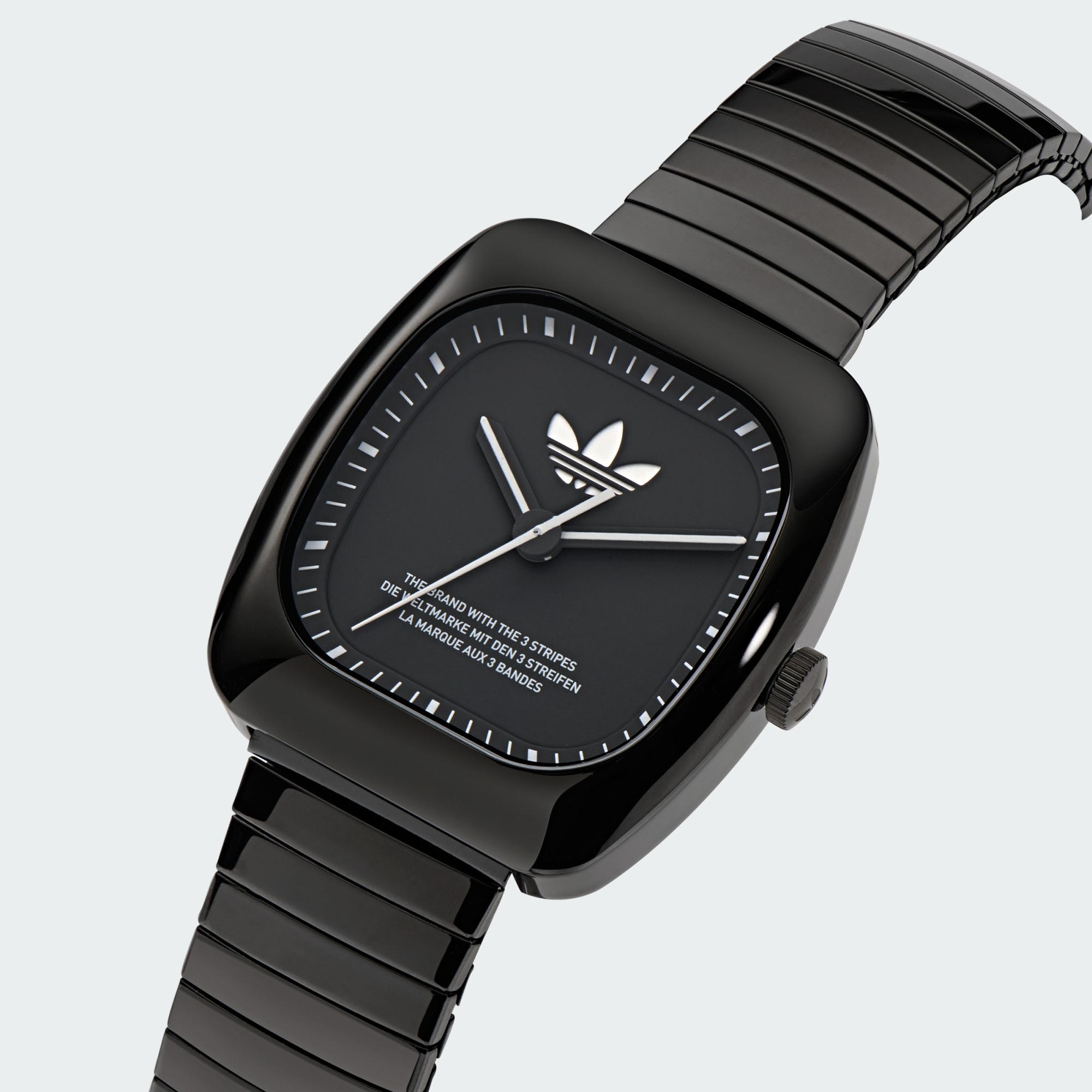 Breng een eerbetoon aan iconen uit het verleden door de iconen van de toekomst te dragen. Dit horloge heeft een vintage ziel met moderne invloeden. Het retro model van gerecycled roestvrij staal heeft sierlijke lijnen. Met de expansieband vind je altijd de perfecte pasvorm, en het Trefoil-logo creëert een sportieve touch.