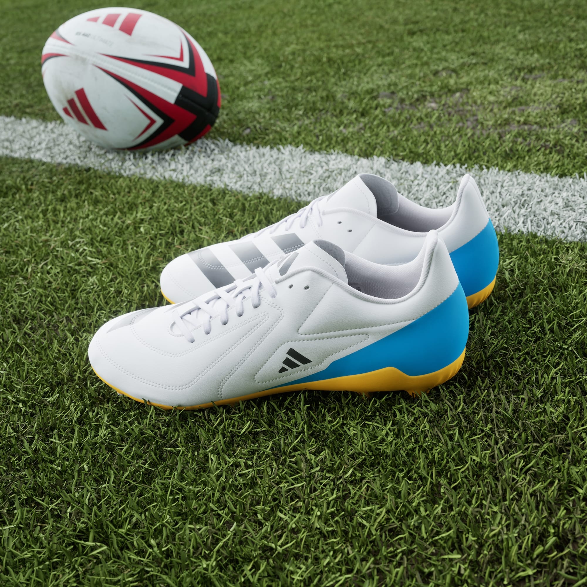Rugbyschoenen voor wedstrijdbepalende behendigheid, gemaakt met gerecycled materiaal.