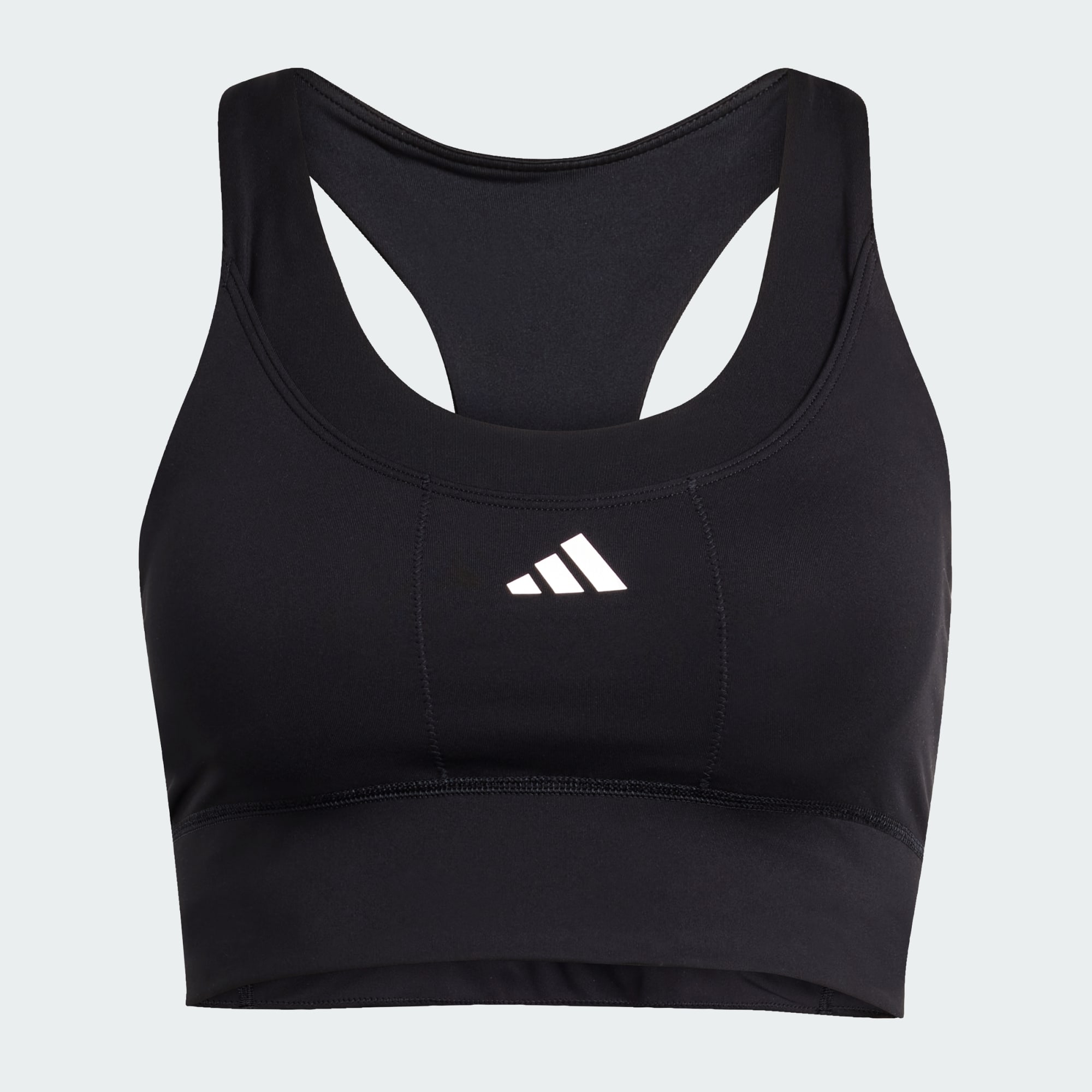 Een sportbeha met CLIMACOOL om je koel, droog en voorbereid te houden, deels gemaakt met gerecycled materiaal.