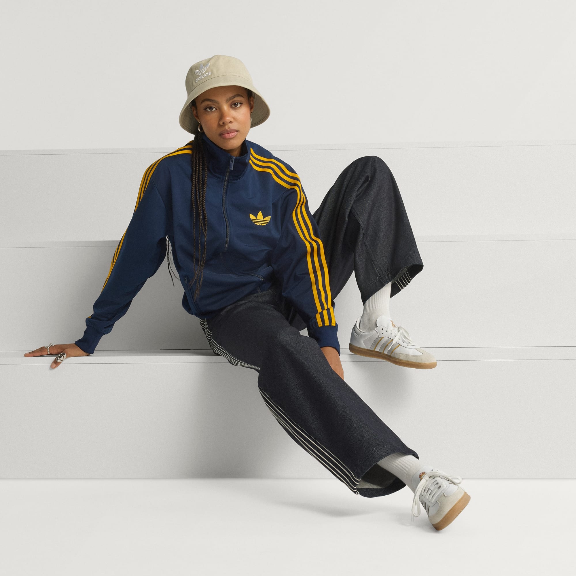 Gemaakt zodat Real Madrid-supporters ook buiten het veld de stijlvol hun passie voor voetbal kunnen laten zien. De Samba schoen, een icoon onder de adidas schoenen, staat bekend om zijn zachte leren bovenwerk en suède T-neus. Dit paar is uitgevoerd in de beroemde thuiskleuren van Real Madrid en heeft een clublogo op de hiel zodat er geen twijfel mogelijk is over welk team je support.