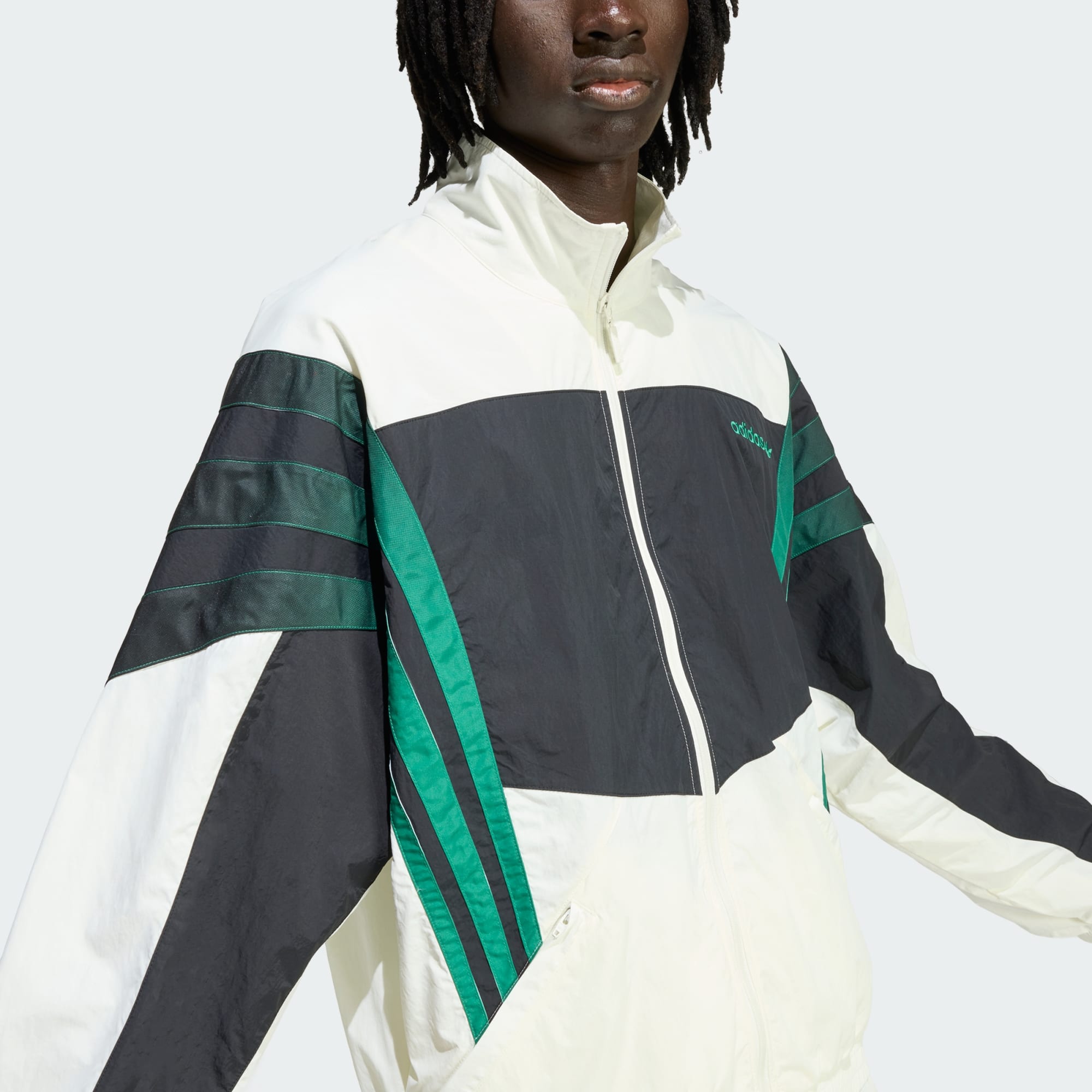 Klassieke stijl ontmoet moderne functionaliteit met het Santiago sportjack. Dit jack is geïnspireerd op het rijke erfgoed van adidas en geeft een frisse draai aan iconische voetbalmodellen. Een geweldige keuze voor wie een actieve levensstijl omarmt. Met dit kledingstuk kun je je liefde voor de wedstrijd laten zien, of je nu op het veld staat of geniet van een dagje uit met vrienden. De platgeweven stof biedt een strakke stijl en robuustheid, geweldig voor actieve dagen. De ritssluiting zorgt voor makkelijk dragen en functionaliteit, terwijl de opstaande kraag een vleugje alledaagse verfijning toevoegt. De normale pasvorm is gemaakt om niet te strak of te los te zitten, voor een comfortabel gevoel en bewegingsvrijheid zonder afleiding. Dit met oog voor detail gemaakte jack belichaamt adidas' toewijding aan kwaliteit en stijl, terwijl het een rijke sportgeschiedenis vertegenwoordigt. Omarm de geest en eenheid van het voetbal en maak je statement met dit favoriete sportswear-item.