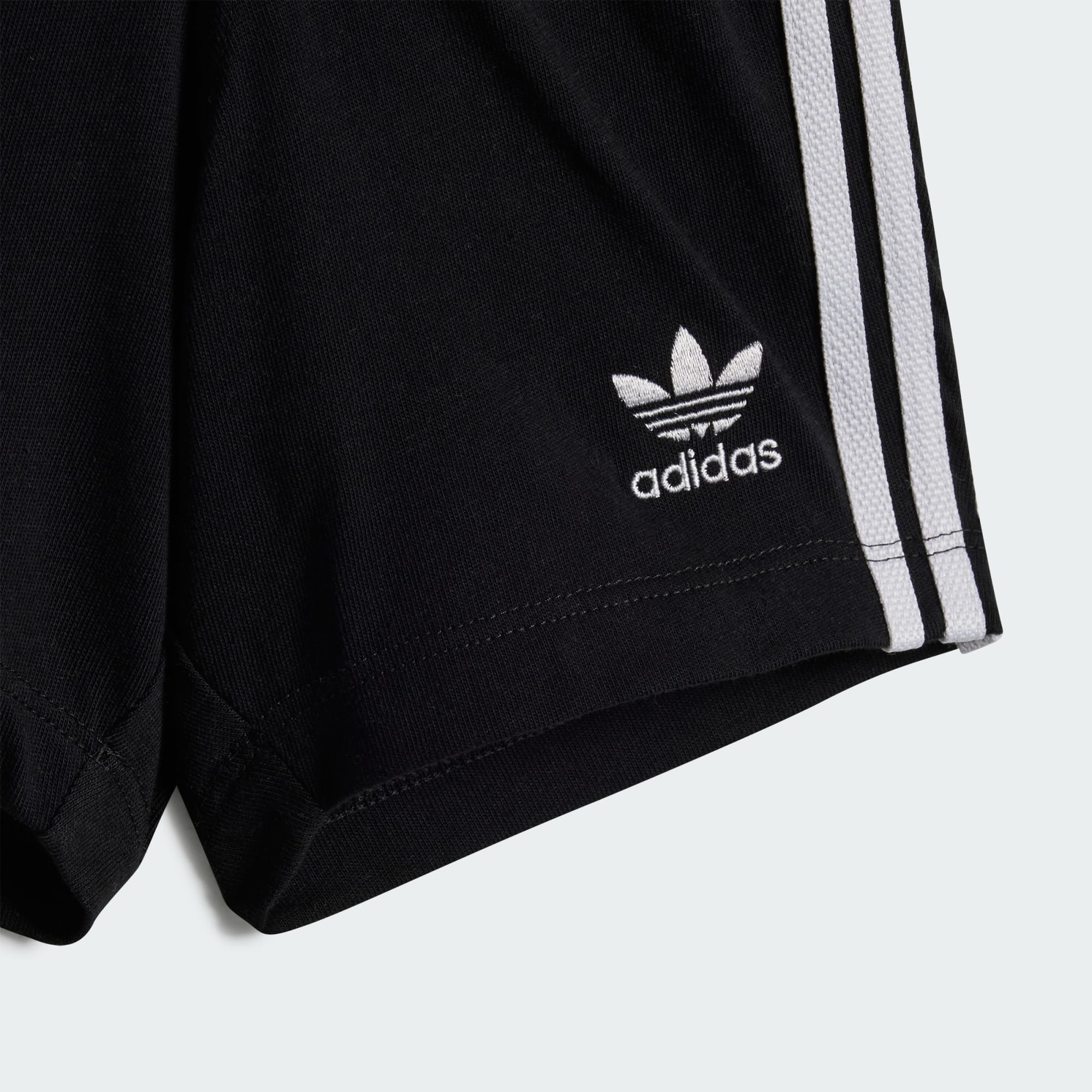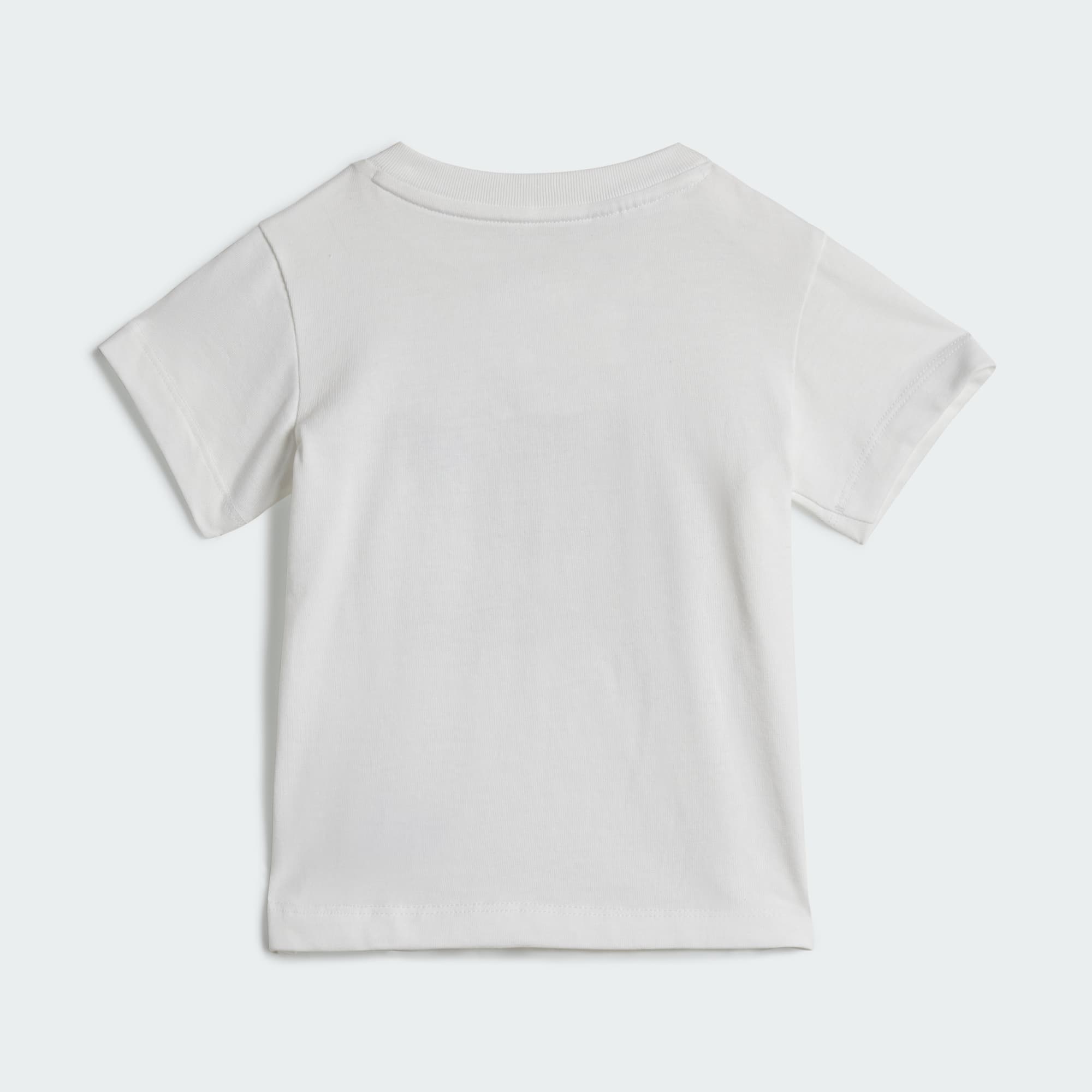 De outfit die peuters keer op keer willen dragen tijdens het spelen. In dit adidas setje van short en T-shirt is je kleintje overal klaar voor. Het iconische Trefoil-logo en de 3-Stripes combineren met een geribbelde ronde hals voor een klassieke, sportieve look. De elastische taille met trekkoord, de drukknopen op de schouder en de enkele jersey houden het comfort krachtig. Het katoen in dit product is verkregen via Better Cotton. Better Cotton wordt ingekocht via een handelsketenmodel genaamd massabalans. Dit betekent dat Better Cotton niet fysiek te herleiden is tot eindproducten. Meer informatie vind je hier: https://bettercotton.org/who-we-are/our-logo/