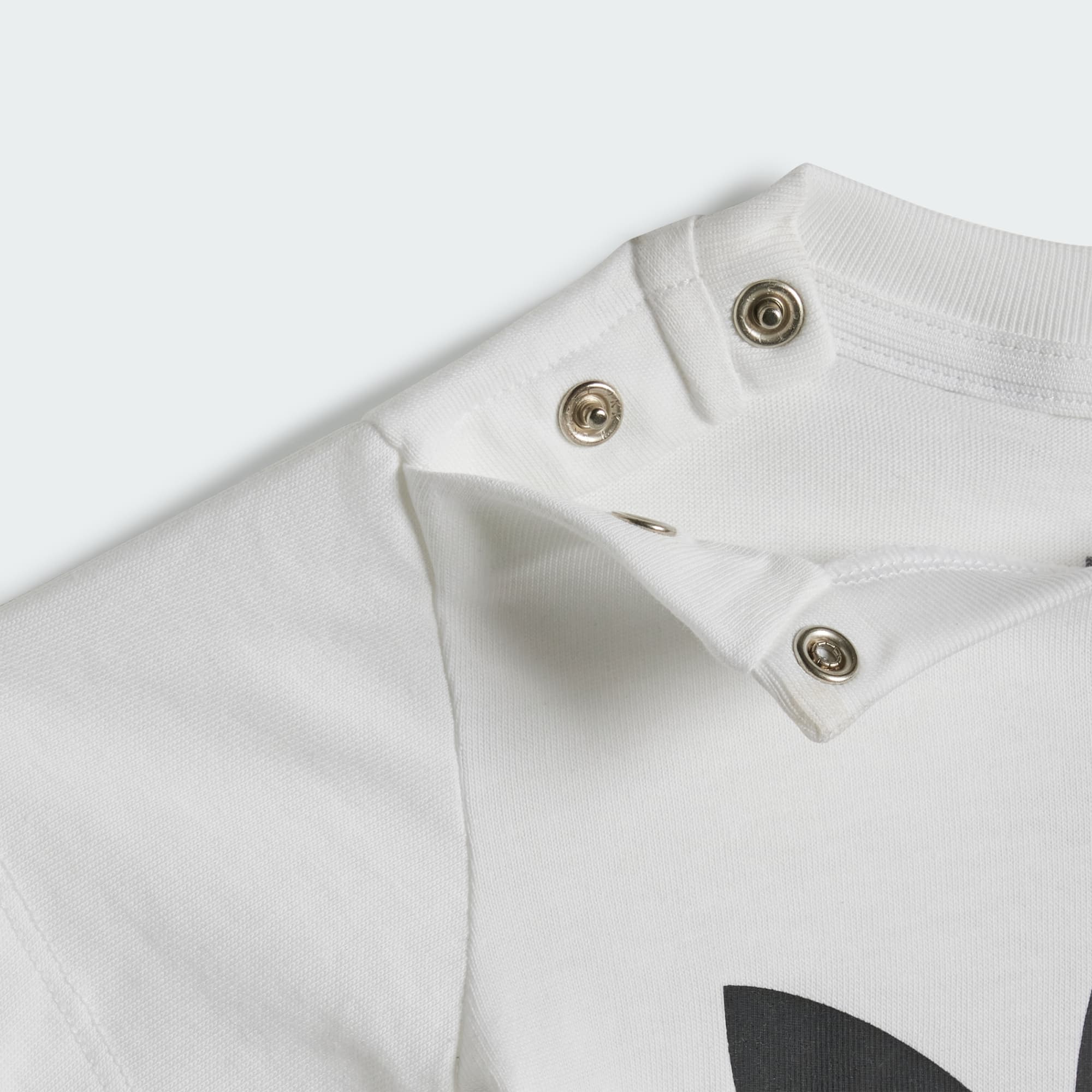 - Shirt: Geribbelde ronde hals met drukknoopje op de schouder