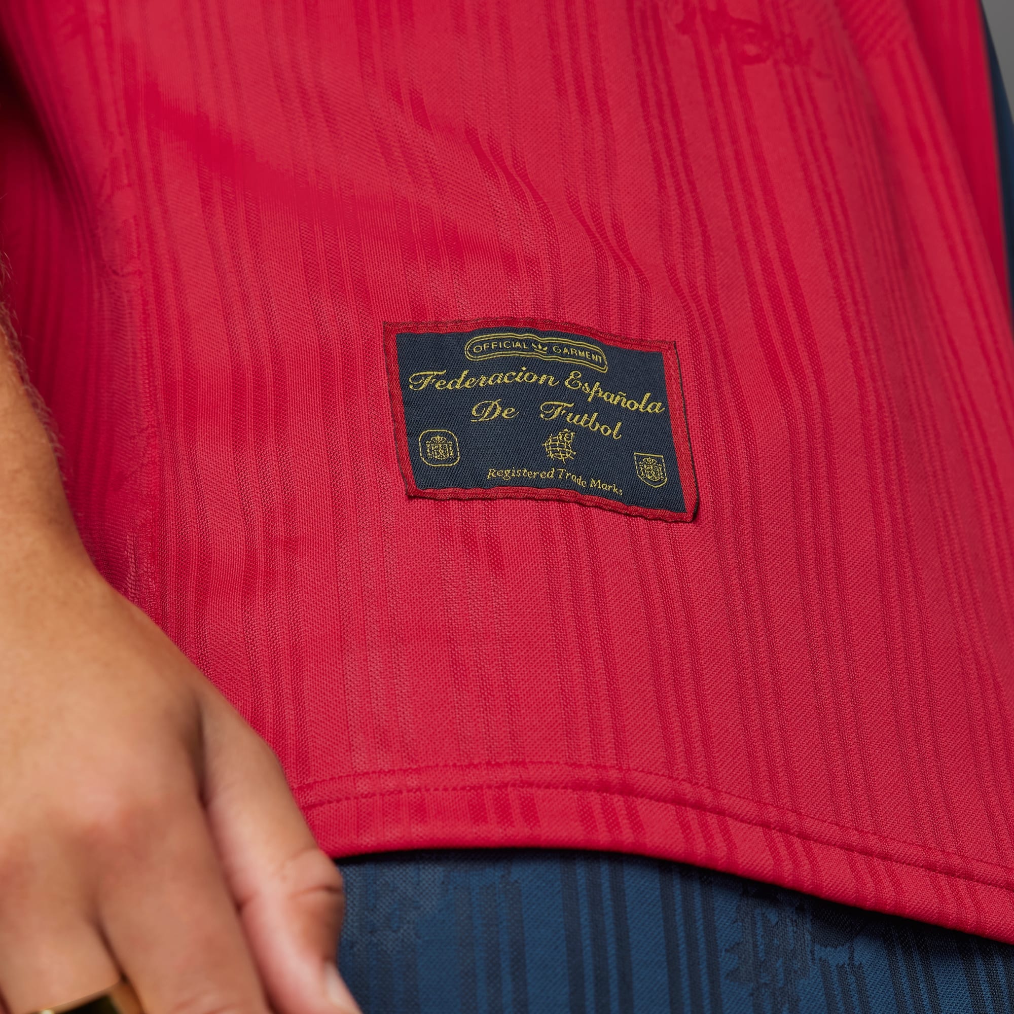 - Opgenaaid 'Federacion Española de Futbol'-embleem boven de zoom