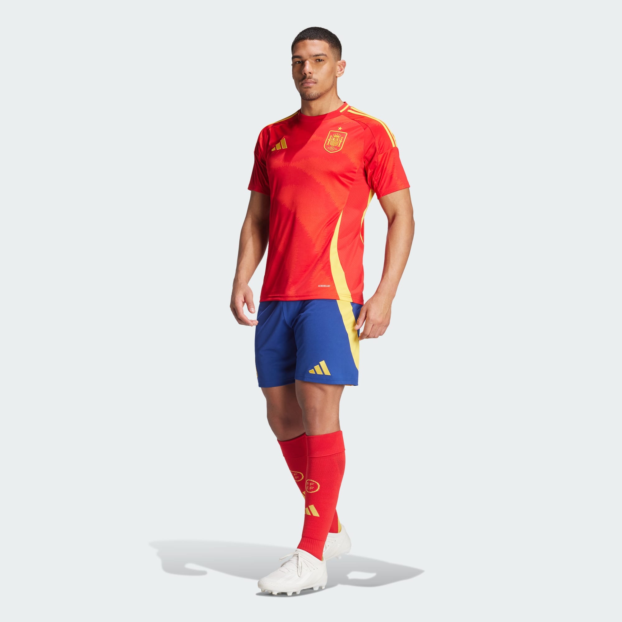Steun het nationale elftal in deze adidas wedstrijdshort. Hij is afkomstig uit een thuistenue dat is geïnspireerd op de nationale Spaanse bloem, en houdt je met zacht interlock en vochtregulerend AEROREADY comfortabel, of je nu op de tribune zit of thuis tv kijkt. Een geweven teambadge boven de zoom laat je voetballiefde bloeien. Dit product is gemaakt met 100% gerecyclede materialen. Door hergebruik van materialen die al eerder zijn gecreëerd, helpen we afval verminderen, en ook onze afhankelijkheid van beperkt beschikbare grondstoffen. Daarnaast verkleint het de voetafdruk van onze producten.
