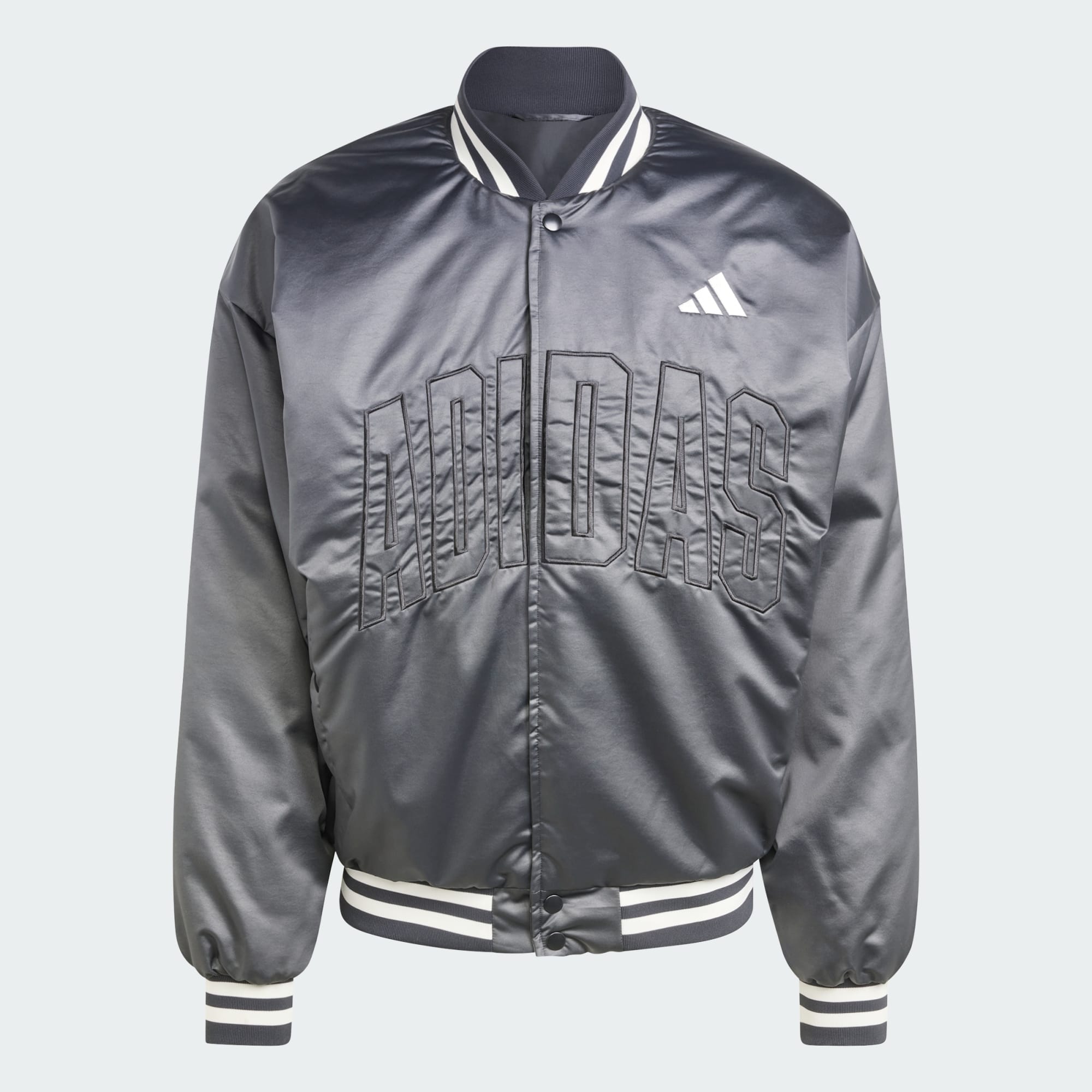 Het geïsoleerde Stadium bomberjack is geïnspireerd op de energie en tradities die stadions tot leven wekken. Dit jack weerspiegelt de passie van fans voor tennis, rugby, wielrennen, handbal, en nog veel meer. Het is gemaakt van satijnen materiaal en heeft een collegiate-look met bomberjacksilhouet. De geribbelde kraag geeft het jack een stijlvolle look, terwijl het 3 Bar Logo links op de borst het iconische design van adidas laat zien. Trek je niets aan van het weer dankzij Climawarm-isolatie. De buitenlaag biedt thermische en waterafstotende bescherming. Of je nu op de tribune staat te juichen of de stad verkent, dit bomberjack van adidas gaat altijd met je mee.