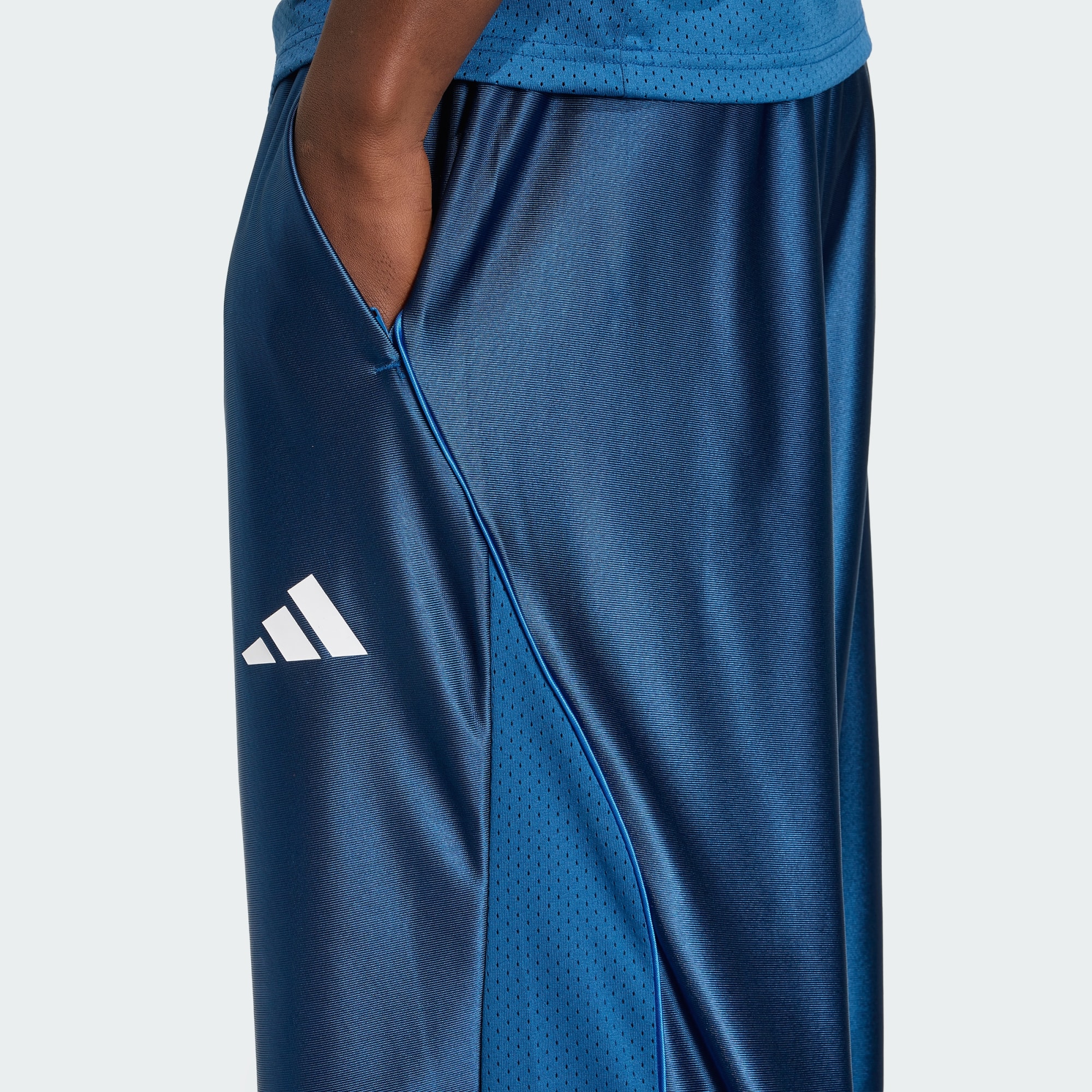 De tadium Shiny Tricot broek draait helemaal om het omarmen van de geest van sport en community. Met inspiratie van de levendige sportcultuur van de VS viert deze broek de fanervaring en de passie die ons allen verenigen. Of je nu juicht voor football, basketbal of honkbal, deze broek is ontworpen om je het gevoel te geven dat je deel uitmaakt van de actie. Hij is gemaakt van tricot voor een glanzende finish die een vleugje stijl toevoegt aan jouw alledaagse look. De losse pasvorm zorgt voor ontspannen comfort, terwijl je 'm gemakkelijk kunt verstellen met de trekkoordsluiting. Dankzij de zijzakken met ritssluiting heb je jouw basic items altijd bij de hand. Het sportieve mesh onderaan en de satijnen biezen geven het design een dynamisch randje, waardoor het een geweldige keuze is voor zowel casual uitjes als actieve dagen. Trek deze broek aan en ervaar de mix van stijl en comfort die adidas aan je leven geeft. Het gaat om meer dan alleen vrijetijdskleding. Het is een manier van leven.