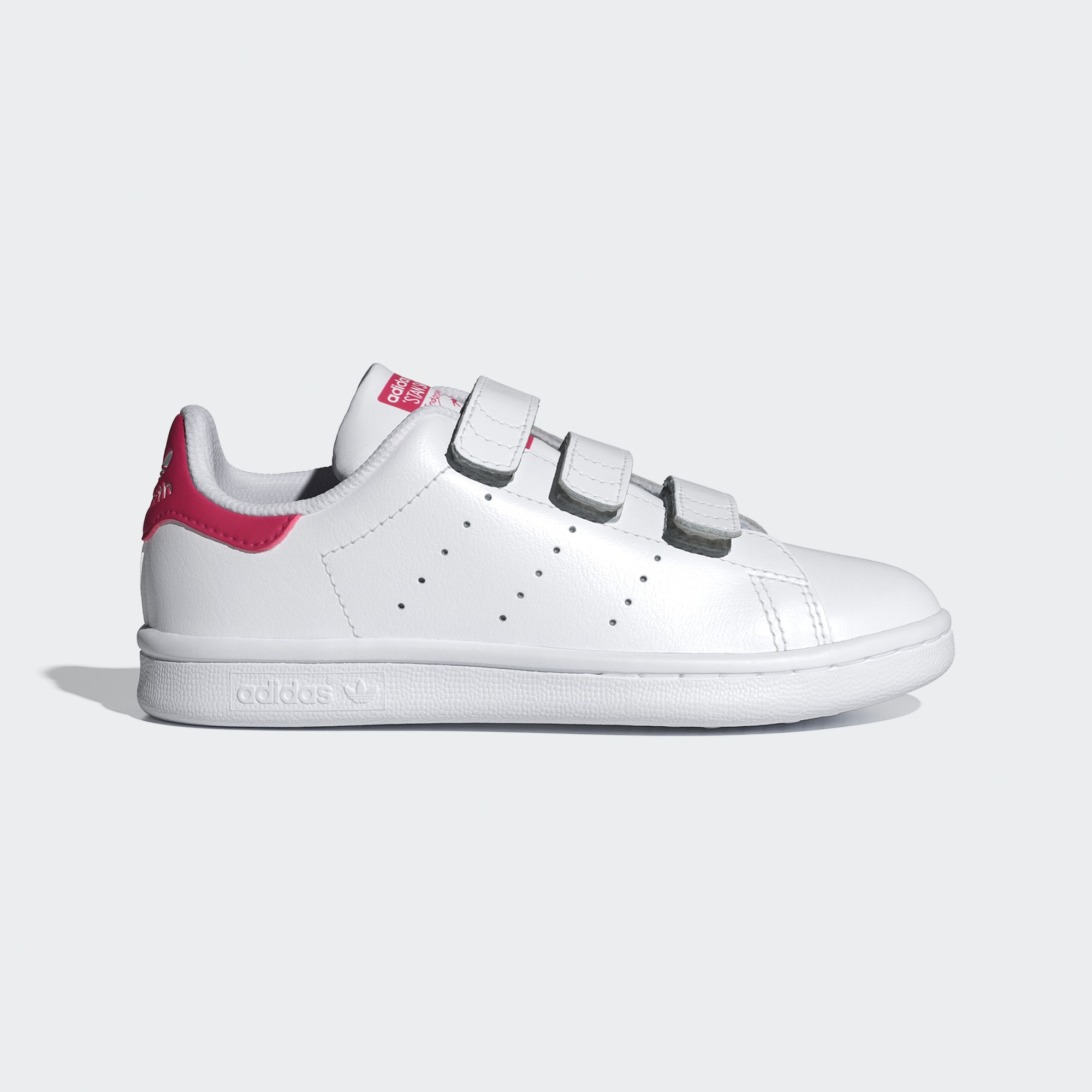 Een van de meest iconische sneakers aller tijden, met een makkelijke klittenbandsluiting die perfect is voor kinderen die geen zin hebben in veters strikken. Deze versie van de eeuwig favoriete Stan Smith geeft z'n minimalistische, bijna volledig witte silhouet een opvallend gekleurd hielstuk en tonglabel. Hij is al generatie na generatie moeiteloos cool, nu met handige klittenbandsluitingen voor makkelijk aan- en uittrekken. In deze karakteristieke stijl van adidas Originals kunnen kids krachtig blijven rennen en spelen.