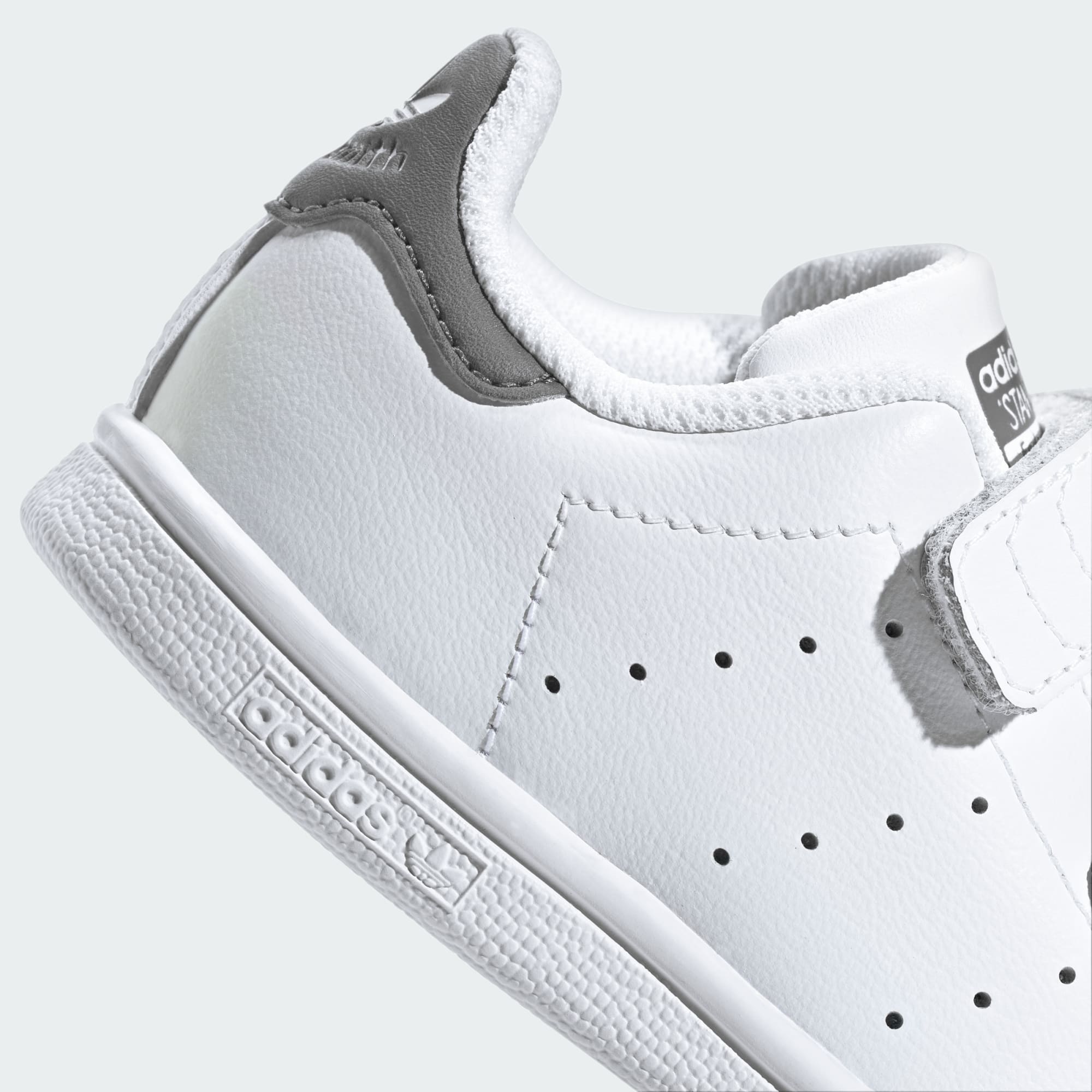 Al vanaf z'n debuut, meer dan vijftig jaar geleden, is de adidas Stan Smith schoen een stijlbasic voor alle leeftijden. Nu kunnen zelfs de kleinste stappertjes in een icoon de deur uit. Deze peuterschoen vormt het klassieke witte bovenwerk met het contrasterende hielstuk om tot een instapper die perfect is voor snelgroeiende voetjes. De klittenbandsluiting maakt aan- en uittrekken makkelijker, en het gladde leren bovenwerk en de geperforeerde 3-Stripes maken de karakteristieke stijl compleet.