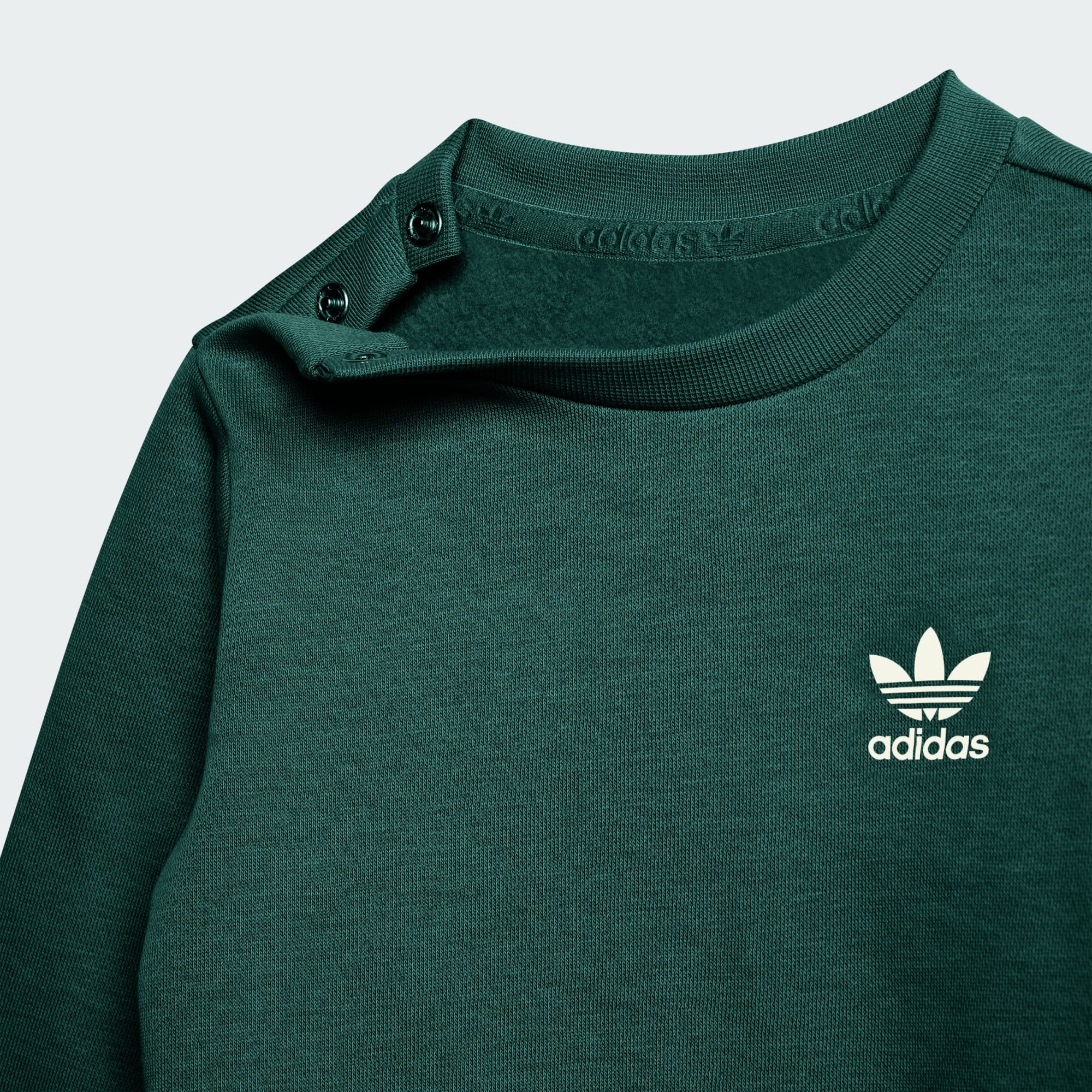 Laat je kleintje kennismaken met een wereld van stijl en comfort met de tweedelige sweaterset. Deze outfit is ontworpen voor peuters en een geweldige keuze voor spelen, uitstapjes of gewoon lekker thuis. De zachte fleece voelt behaaglijk aan, en de klassieke ronde hals en normale pasvorm bieden een tijdloze stijl. Met een mid-rise taille en knoopsluiting is het setje gemakkelijk aan en uit te trekken, waardoor het een praktische keuze is voor drukke ouders. Of het nu een dagje naar het park is of een familiebijeenkomst, dit setje is jouw go-to voor moeiteloze stijl en comfort. Omarm de originele adidas flair met een stijlvolle en comfortabele set voor de allerkleinsten.