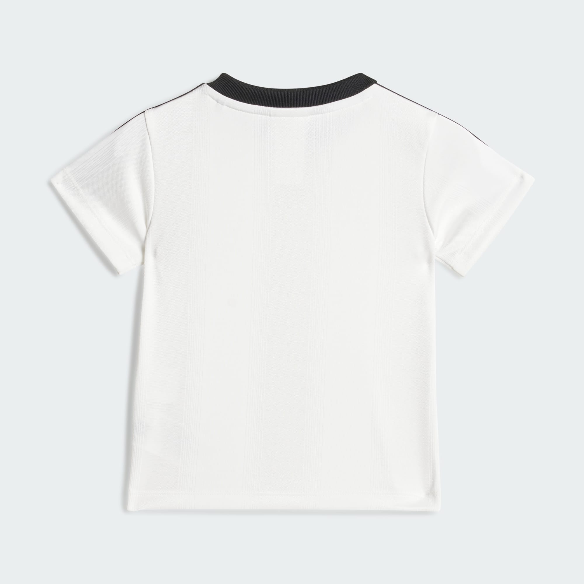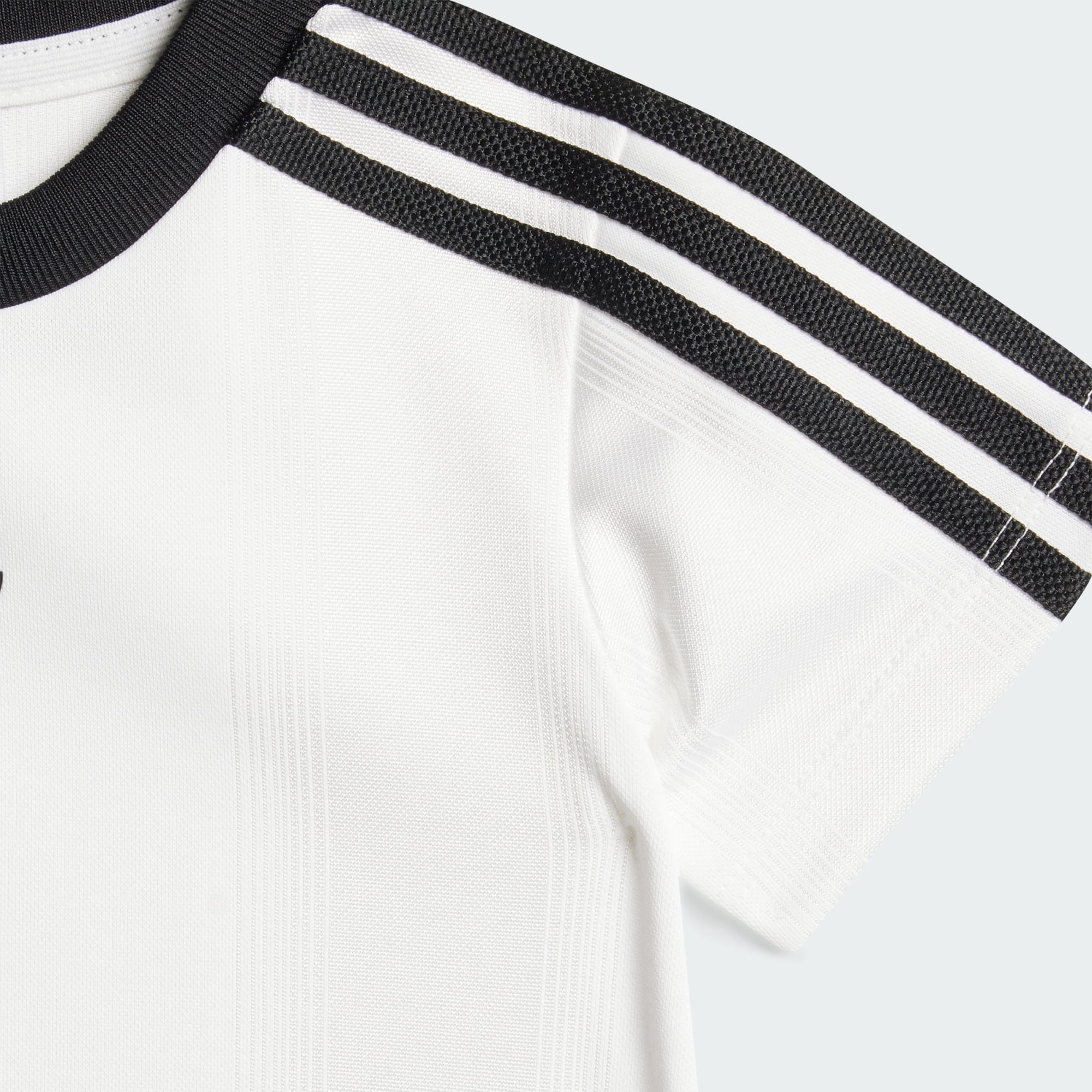 Kleed je kleine fan in dit adidas peutersetje voor de dag van de wedstrijd, of elke andere dag. Het T-shirt en de bijpassende short zijn gemaakt van zacht gebreid jacquard voor comfort tijdens alle actie. 3-Stripes en Trefoil-logo's houden 't geworteld in adidas historie.