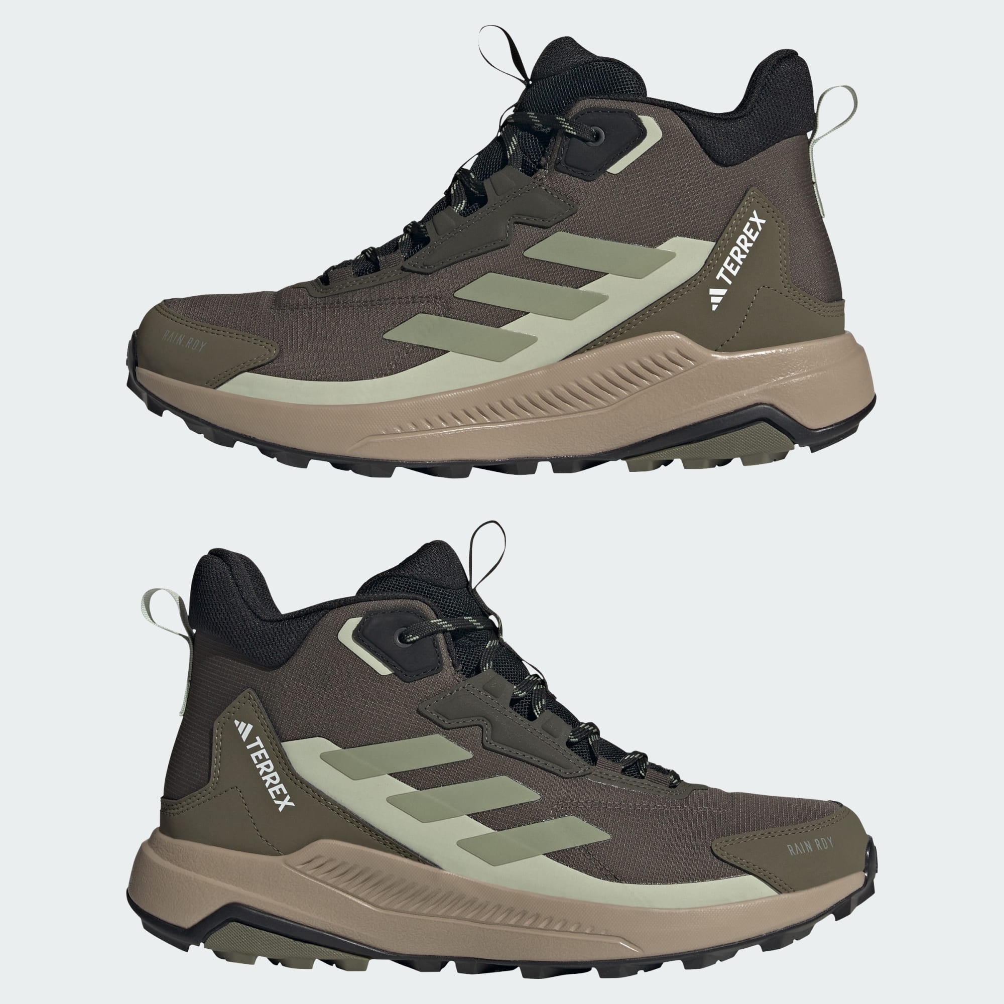 Struin. Zwerf. Ontdek. Trek deze adidas Terrex hikingschoenen aan en ga hoog of laag, nat of droog op avontuur. De halfhoge boord ondersteunt de enkel en de dempende middenzool levert langdurig comfort. RAIN.RDY houdt samen met een aan de zijkanten vastgezette tong de elementen buiten, zodat je voeten in natte omstandigheden droog en comfortabel blijven. Ze zijn gemaakt voor slijtagebestendigheid op lange afstanden, vandaar die Traxion-loopzool voor betrouwbare grip. Door voor gerecycled materiaal te kiezen, kunnen we materialen hergebruiken die al zijn gemaakt, wat helpt om afval te verminderen. De keuze voor hernieuwbare materialen zal ons helpen om onze afhankelijkheid van eindige hulpbronnen te verminderen. Onze producten die zijn gemaakt met gerecyclede en hernieuwbare materialen bevatten in totaal minimaal 20% van deze materialen.