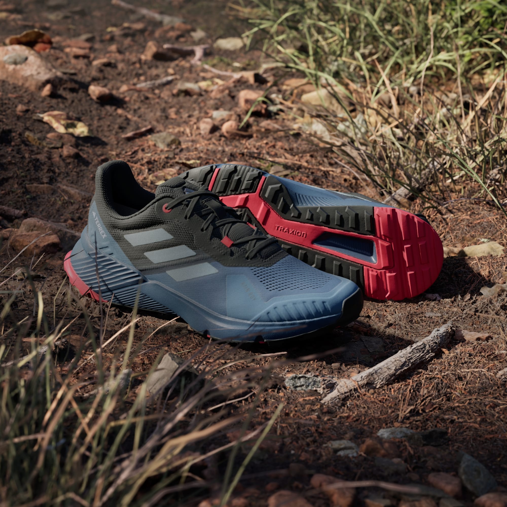 Ga off-road. Van je voordeur tot de trails en weer terug ondersteunen deze adidas trailrunningschoenen je stappen met lichtgewicht demping en comfort. Waterproof RAIN.RDY houdt je voeten droog wanneer je een beekje of modderig stuk tegenkomt. Traxion-rubber biedt grip in alle richtingen, zowel op het asfalt als op de trails. Het bovenwerk bestaat voor minstens 50% uit verschillende gerecyclede materialen. Dit product vertegenwoordigt slechts één van onze oplossingen om te helpen een einde te maken aan plastic afval.