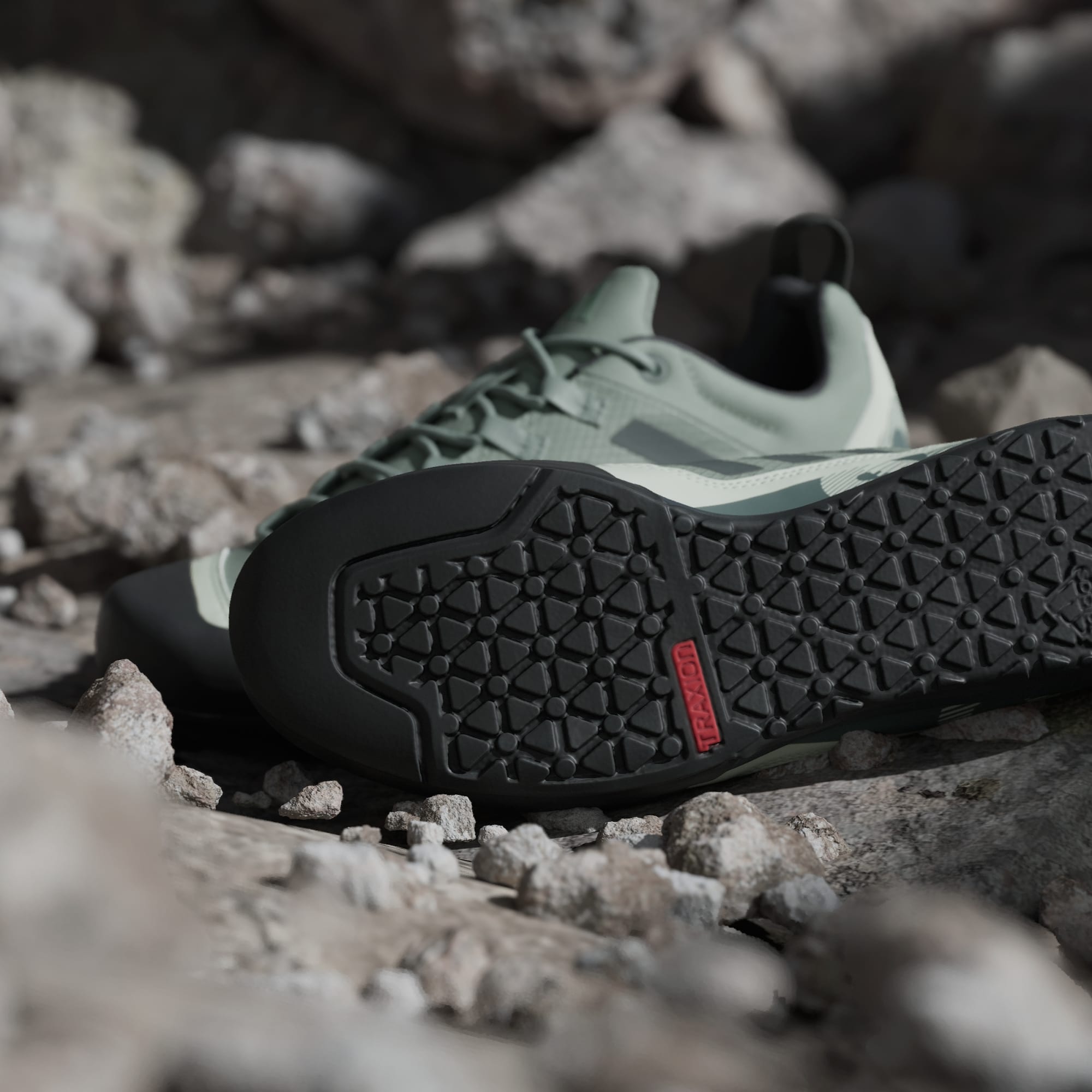 De Traxion-loopzool maximaliseert grip in alle richtingen met een noppenprofiel dat is ontwikkeld voor ruig terrein.