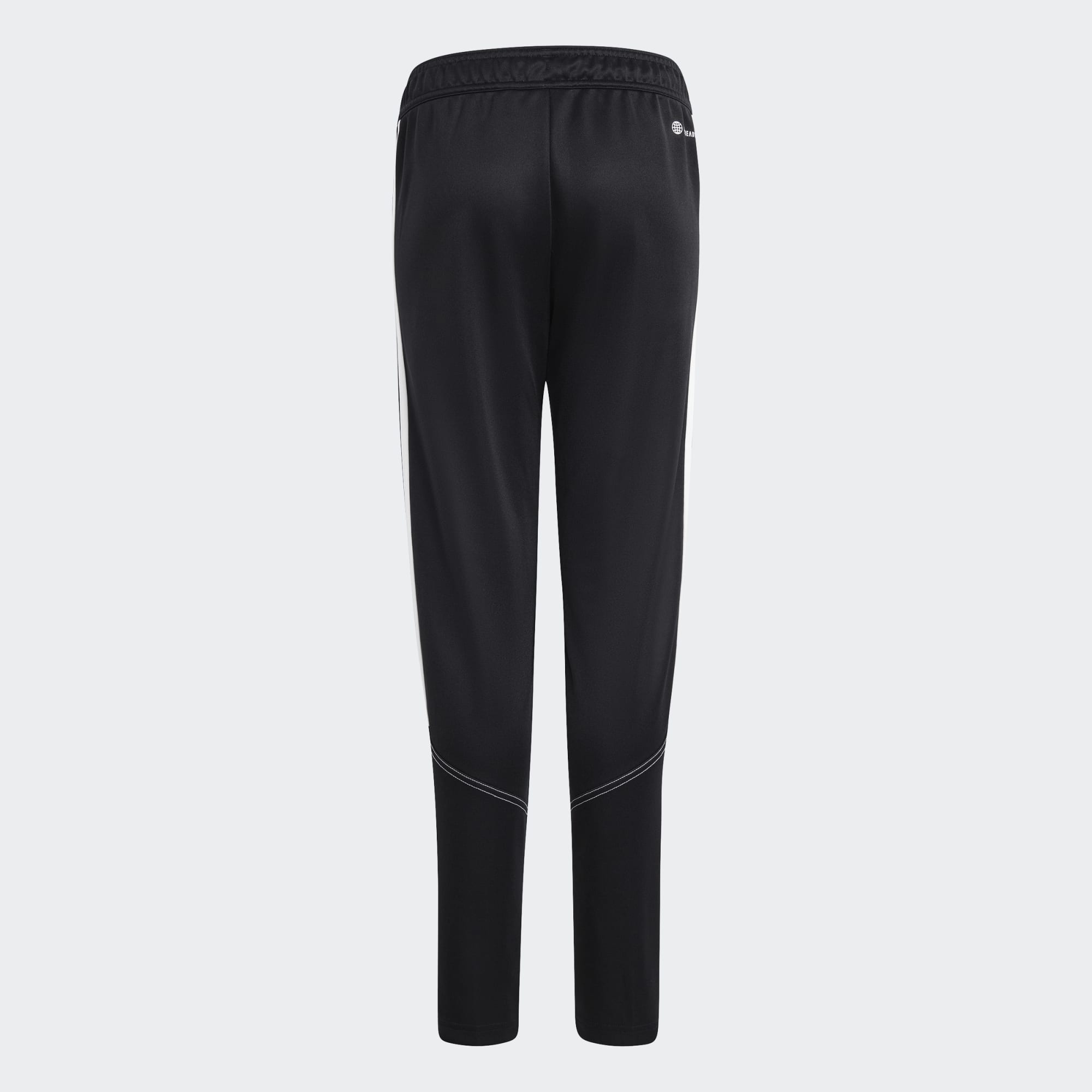 Essentiële trainingsgear van adidas. Trek deze junior Tiro 23 Club voetbalbroek aan voordat je het veld op stapt voor die koude wintersessie. Het strakke, gestroomlijnde model en vochtabsorberend AEROREADY houden je in beweging tijdens sprints en rondo's. Zodra je de perfecte temperatuur hebt bereikt, trek je 'm dankzij de enkelritsen makkelijk uit over je schoenen.