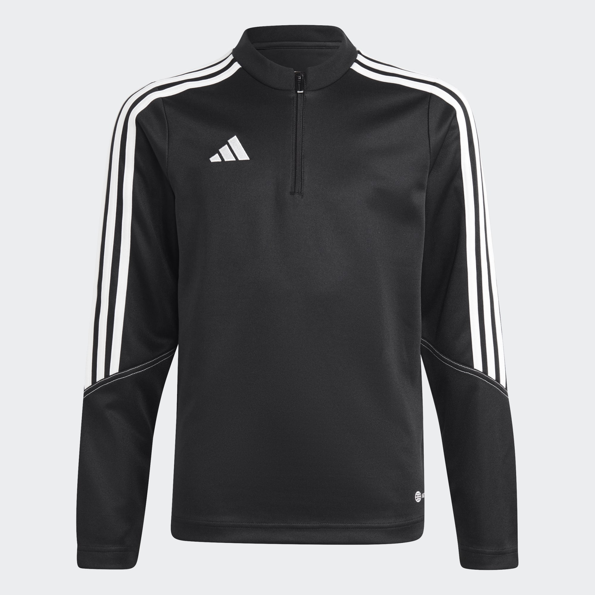 Basic trainingskleding van adidas. Trek dit junior Tiro 23 Club voetbalsweatshirt aan voordat je het veld op stapt voor die koude wintersessie. Doe de korte rits omhoog, schuif de mouwen over je handen en zet ze vast met de duimgaten in de boorden. Je kunt erop vertrouwen dat vochtabsorberend AEROREADY je comfortabel houdt terwijl je bedekt bent.
