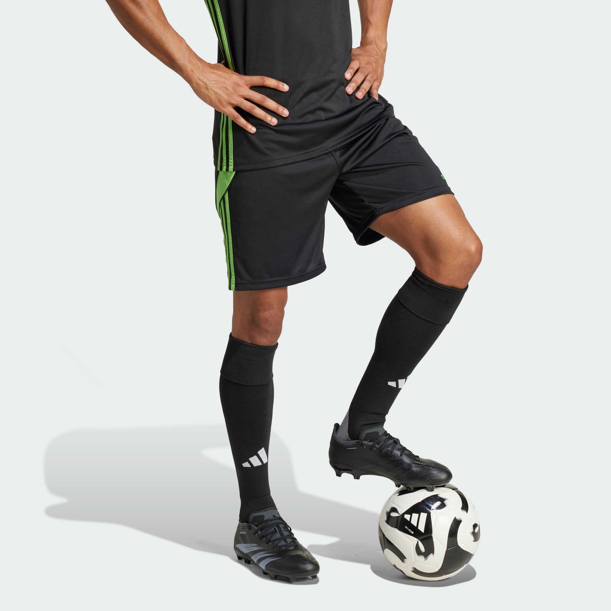 Zet het veld in vuur en vlam in deze lichtgewicht Tiro 24 voetbalshort van adidas. Het model kan wedstrijden met de hoogste intensiteit aan en houdt je met vochtafvoerend AEROREADY fris tot het laatste fluitsignaal. De 3-Stripes aan de zijkanten en het geborduurde 3 Bar Logo maken 'm speels compleet.