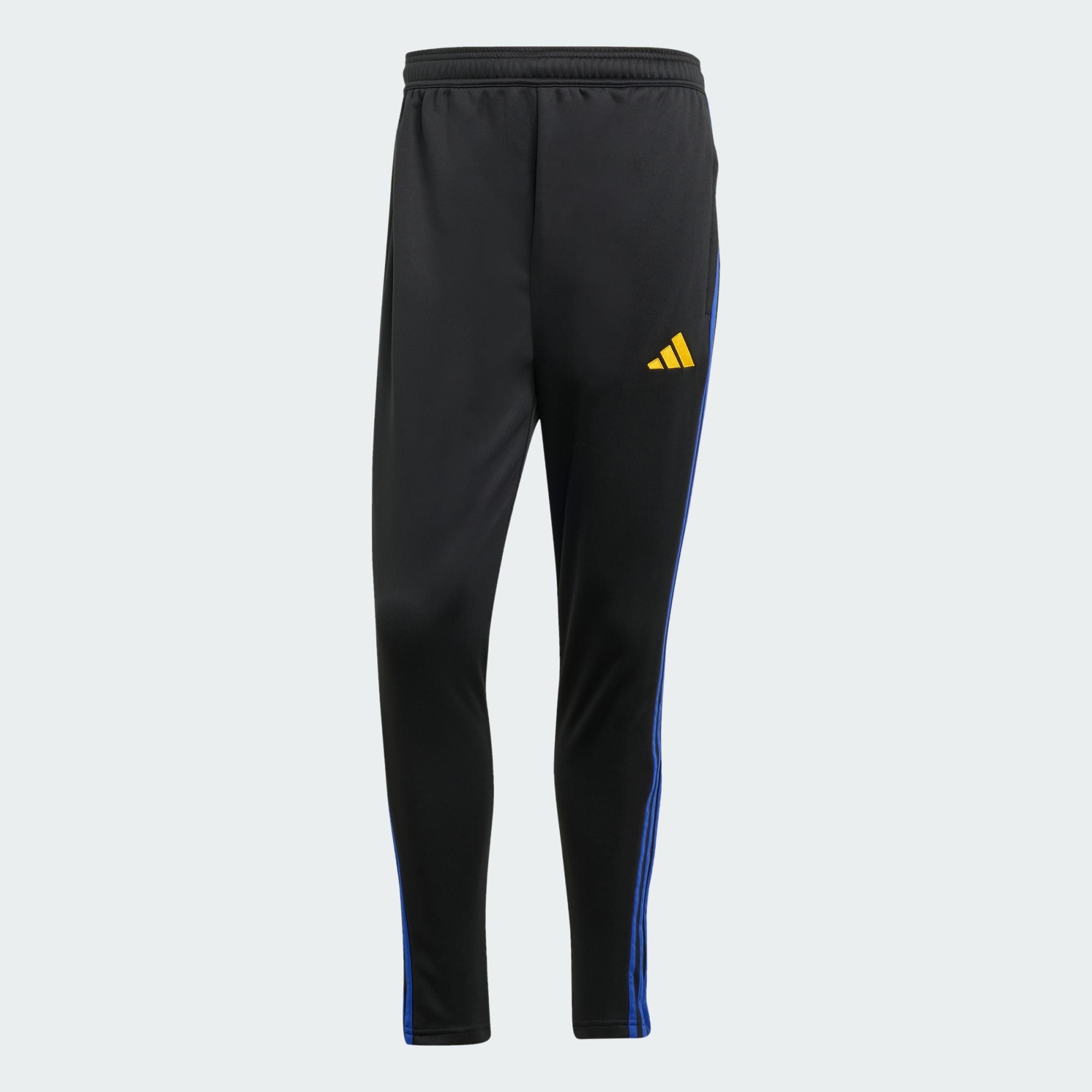 Nice pair of joggers , fleece lined for warmth & a water resistant fabric on the outside . Decent side pockets . You have the three stripes running down the leg & the adidas logo on the pocket . They do keep you warm aswell .