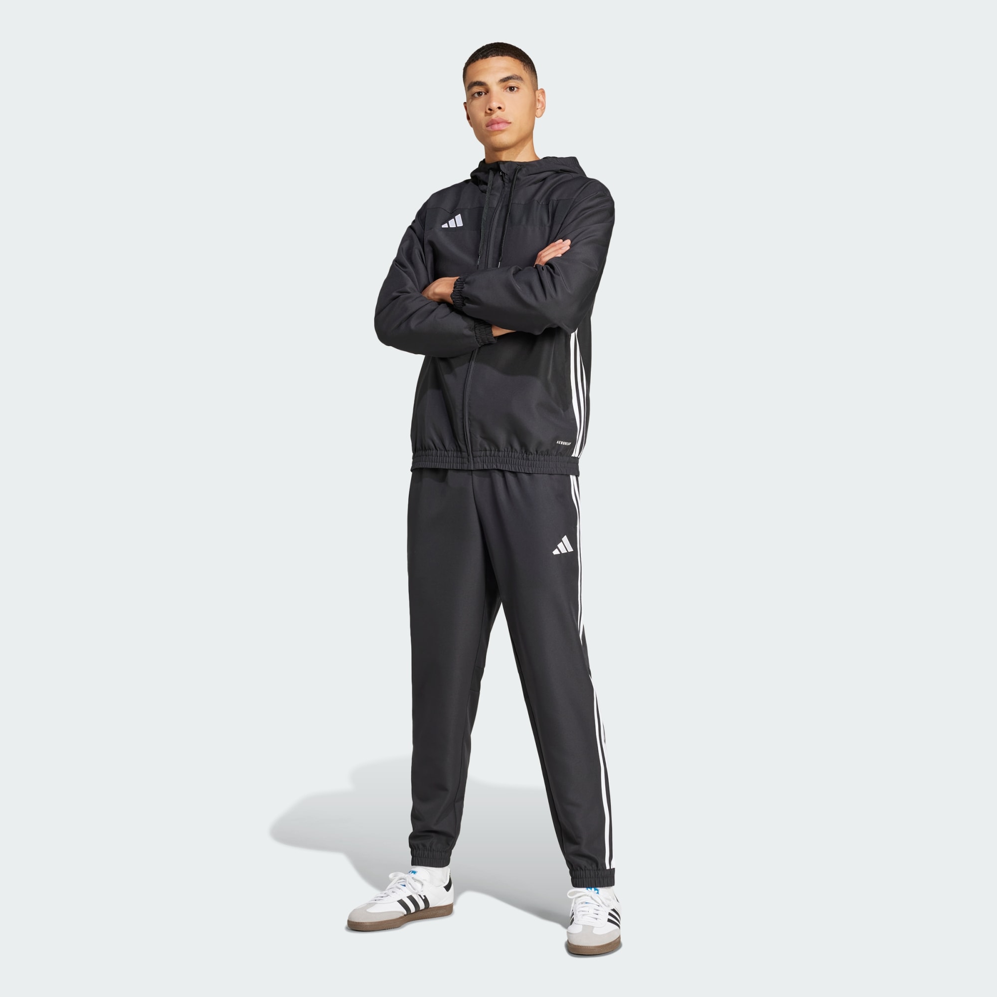 Een vochtregulerende Tiro broek die is gemaakt met gerecycled materiaal.