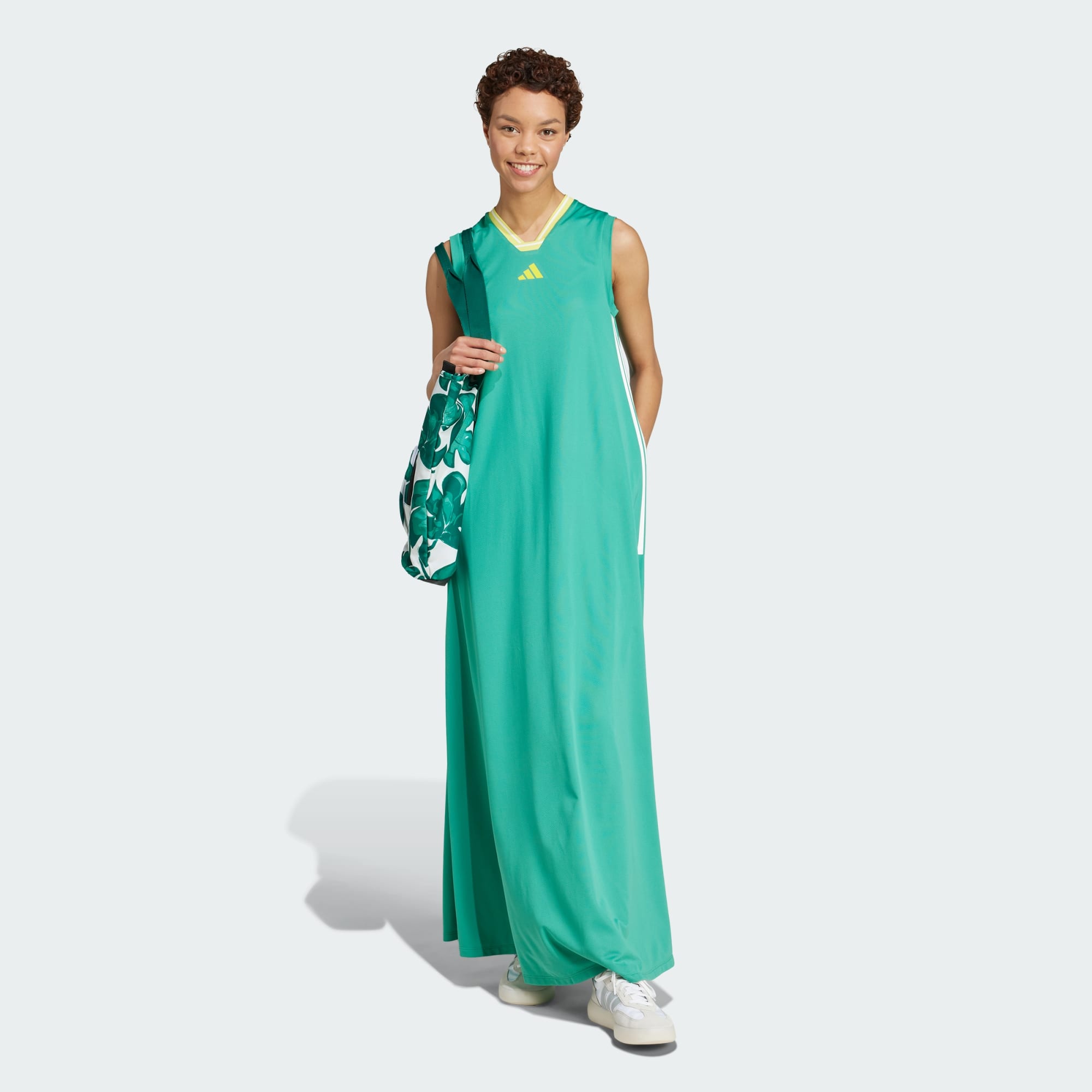 Met deze zwierige adidas jurk komen de zomerse vibes vanzelf. Het zachte mesh houdt je koel en comfortabel tijdens avonturen in de warmte. Een geribbeld inzetstuk en iconische 3-Stripes geven de jurk karakteristieke adidas stijl. Dit product is gemaakt met 100% gerecyclede materialen. Door hergebruik van materialen die al eerder zijn gecreëerd, helpen we afval verminderen, en ook onze afhankelijkheid van beperkt beschikbare grondstoffen. Daarnaast verkleint het de voetafdruk van onze producten.