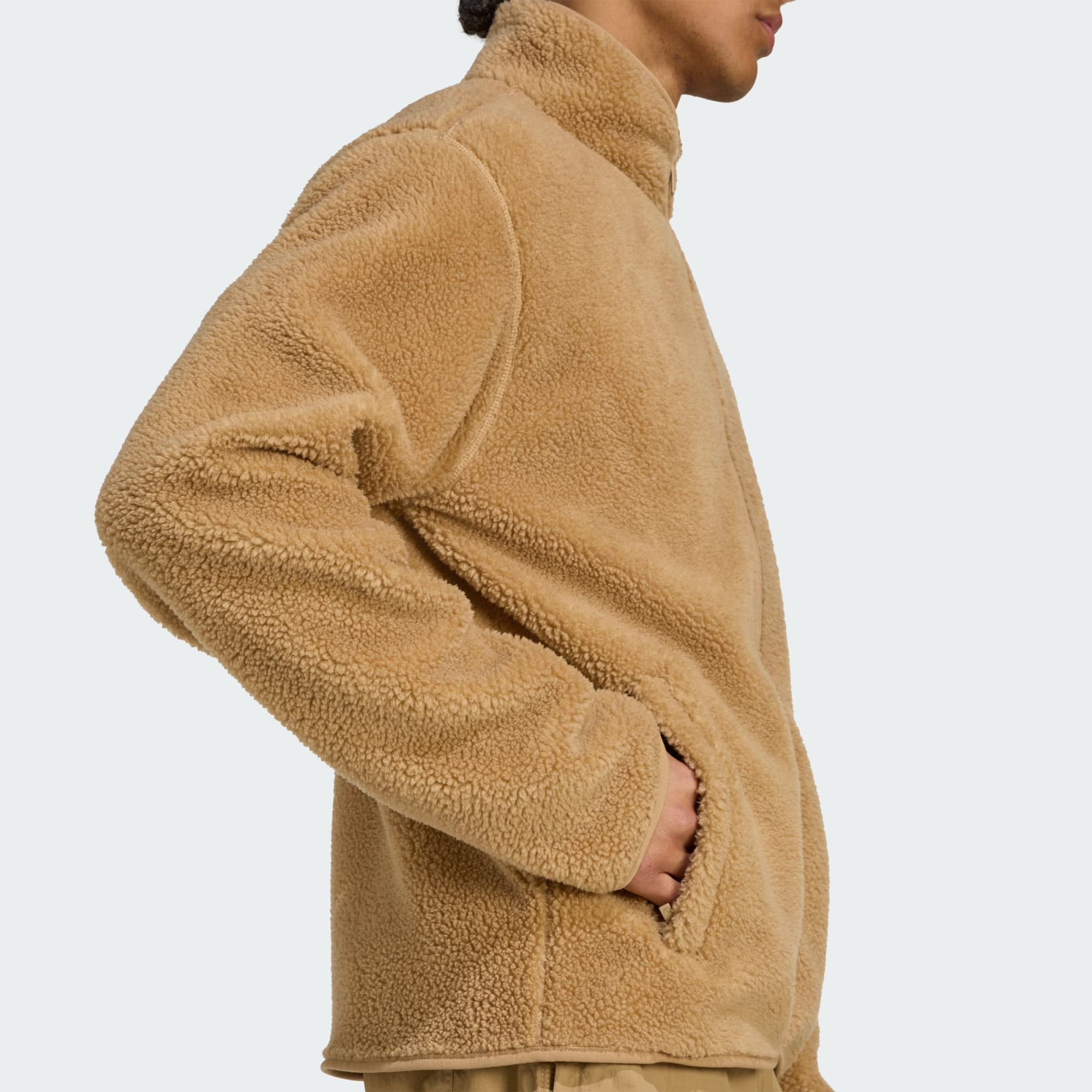 Het zachte fleecegevoel van dit adidas jack nodigt je uit om je in comfort te nestelen. Of je nu op stap gaat voor een gezellig dagje met vrienden of gewoon lekker thuis blijft, de losse vorm zorgt voor een ontspannen vibe. Een Trefoil-badge op de borst vormt de finishing touch, verwijzend naar decennia van op sport geïnspireerde stijl.