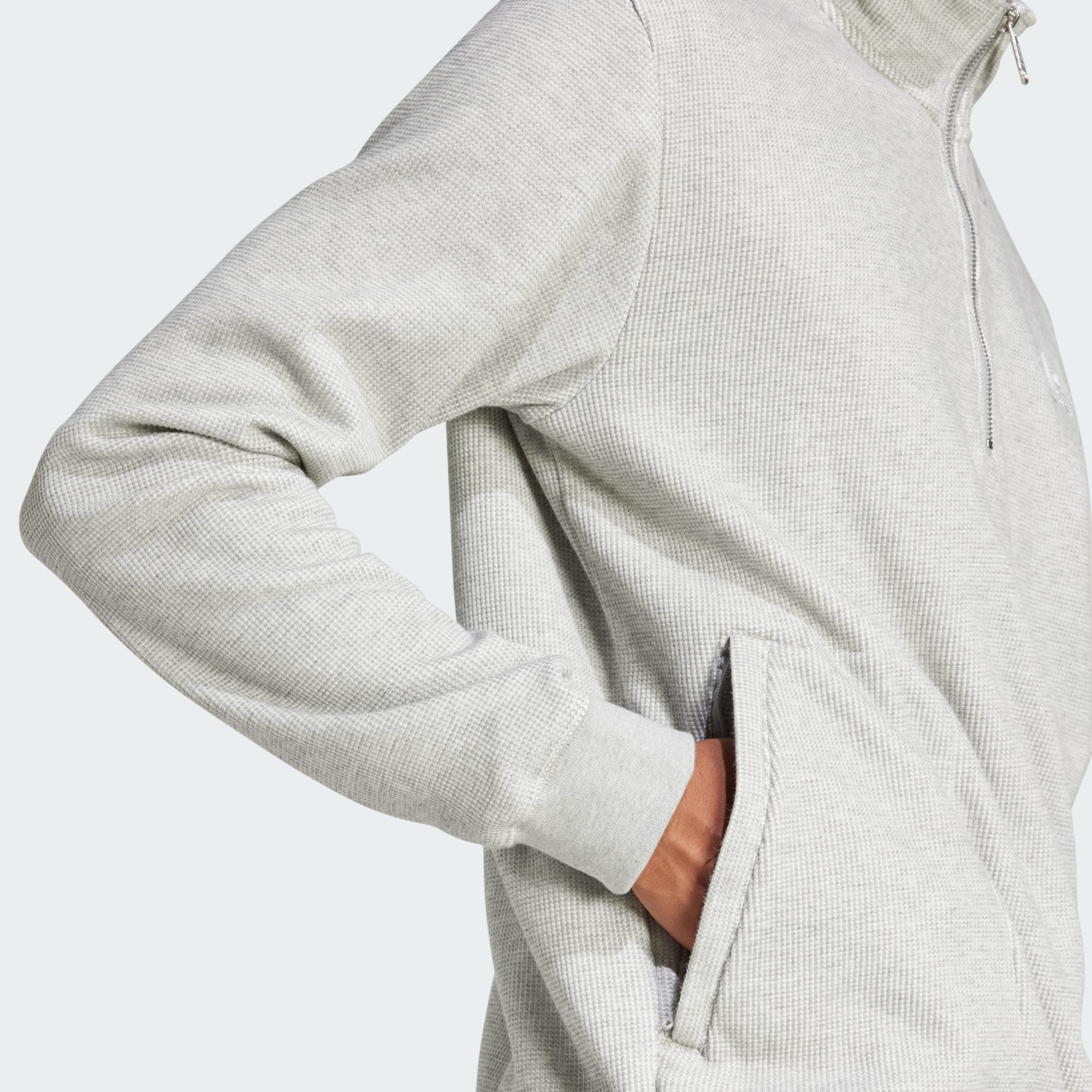Trefoil Essentials Waffle Sweatshirt met Halflange Rits