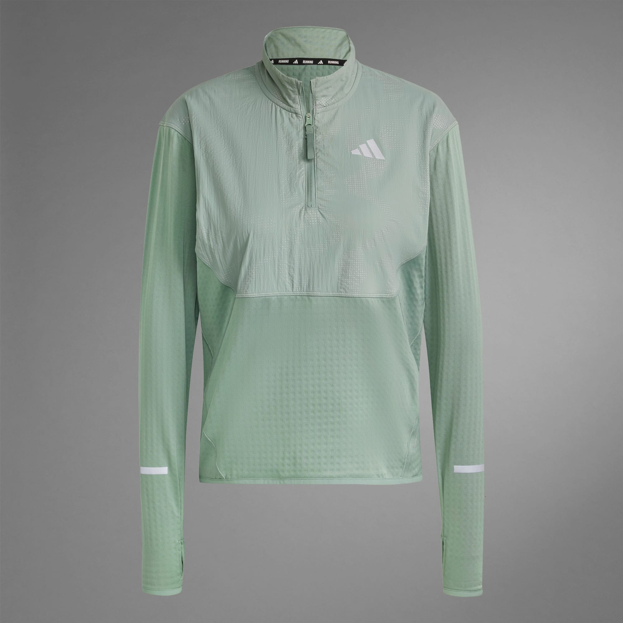 Een reflecterend hardloopshirt met halflange rits, deels gemaakt met gerecycled materiaal.