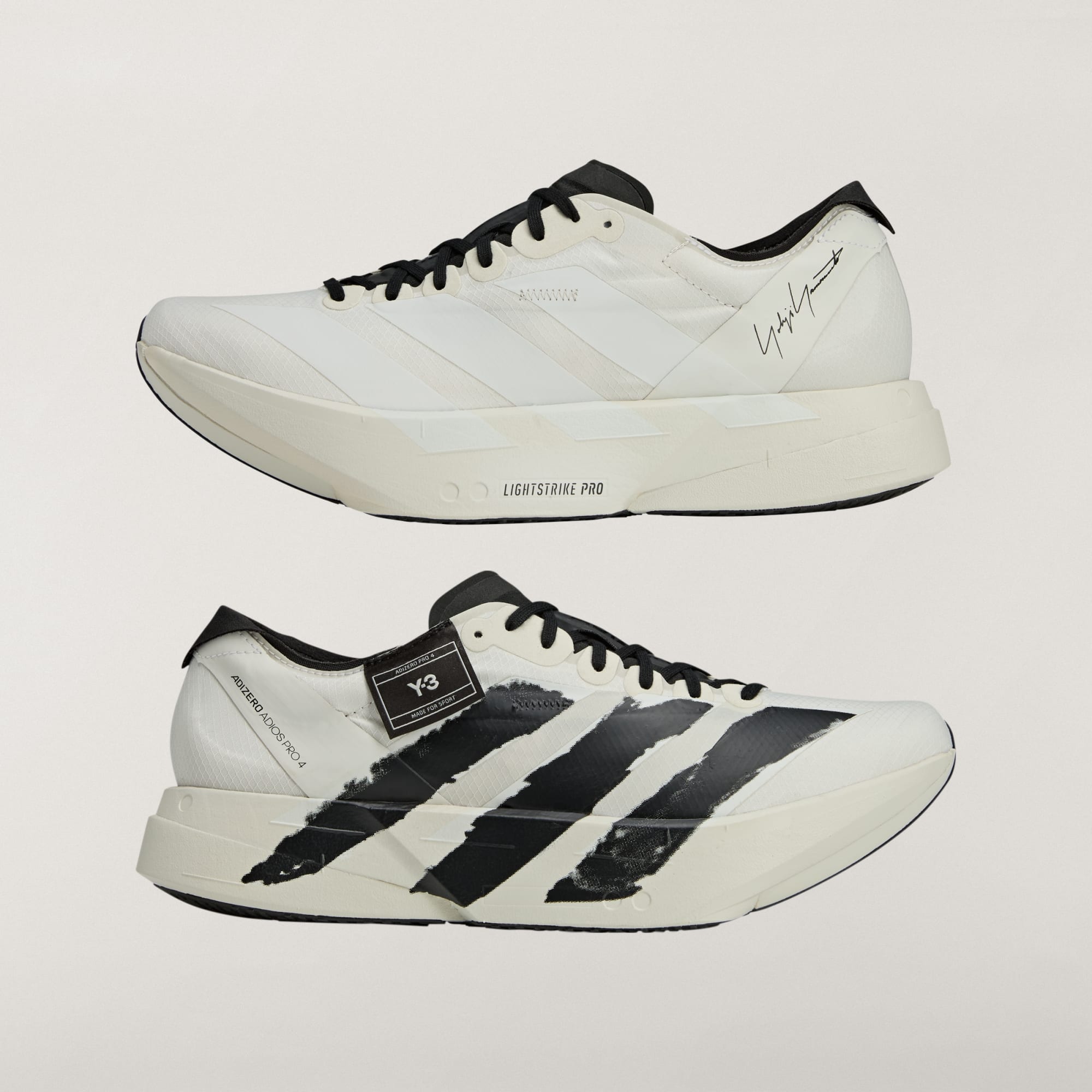 Deze Y-3 Adios Pro 4 is een vernieuwde versie van de schoenen uit het topsegment van adidas Running. Hij is gemaakt om langeafstandsrecords te verbreken, met een bovenwerk van stretch-mesh, ultralichte, dubbellaagse Lightstrike Pro-middenzooldemping en ENERGYRODS onder de voet voor maximale energieteruggave, stabiliteit en stuwkracht. Verder is-ie uitgerust met een rubberen LIGHTTRAXION-loopzool voor minder gewicht en superieure grip. Alle technologieën komen samen zodat je sneller verder kunt gaan. Een Y-3 badge en een graphic van Yohji Yamamoto's handtekening tegenover elkaar op de boord maken de look compleet.