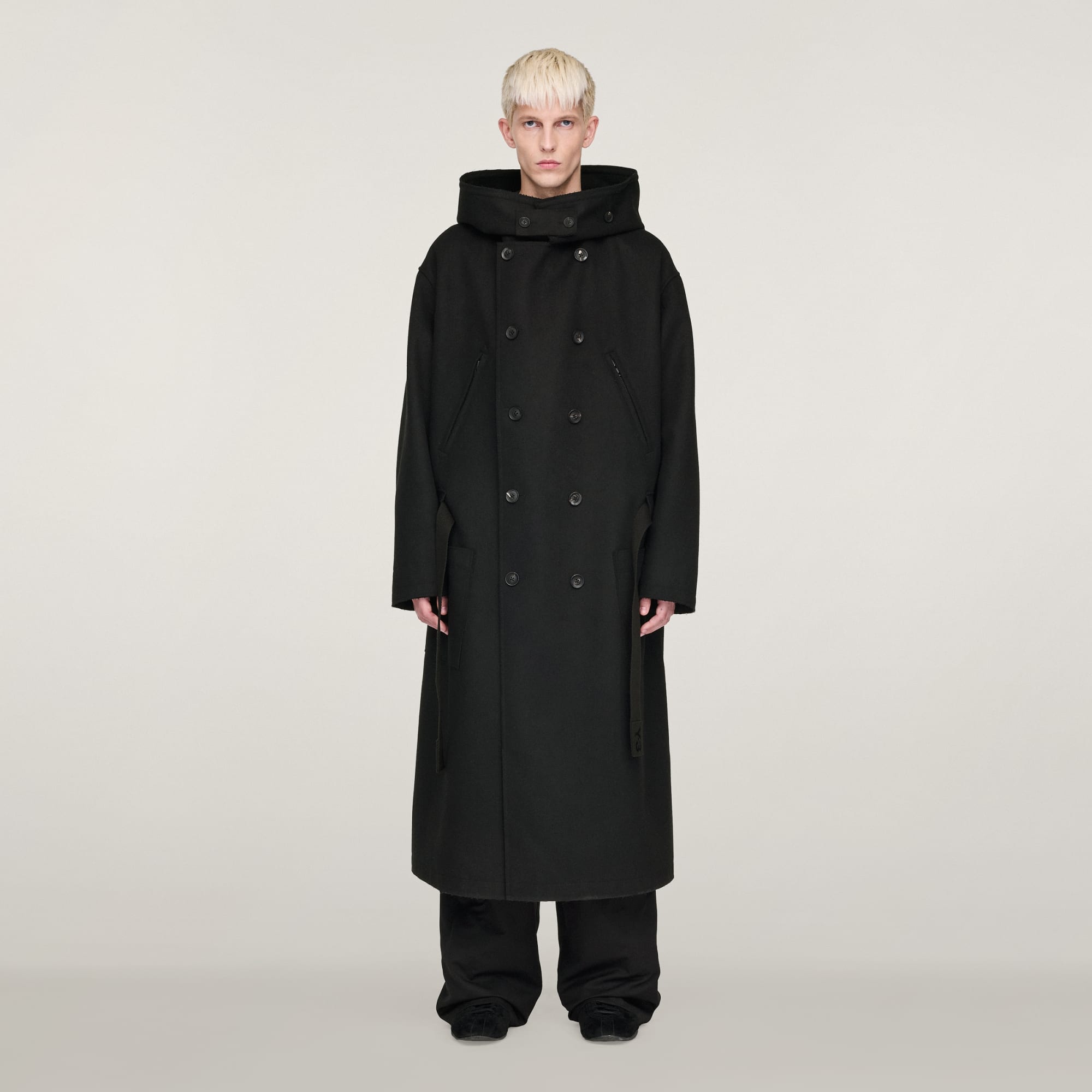 Een oversized meltonjas van Y-3.